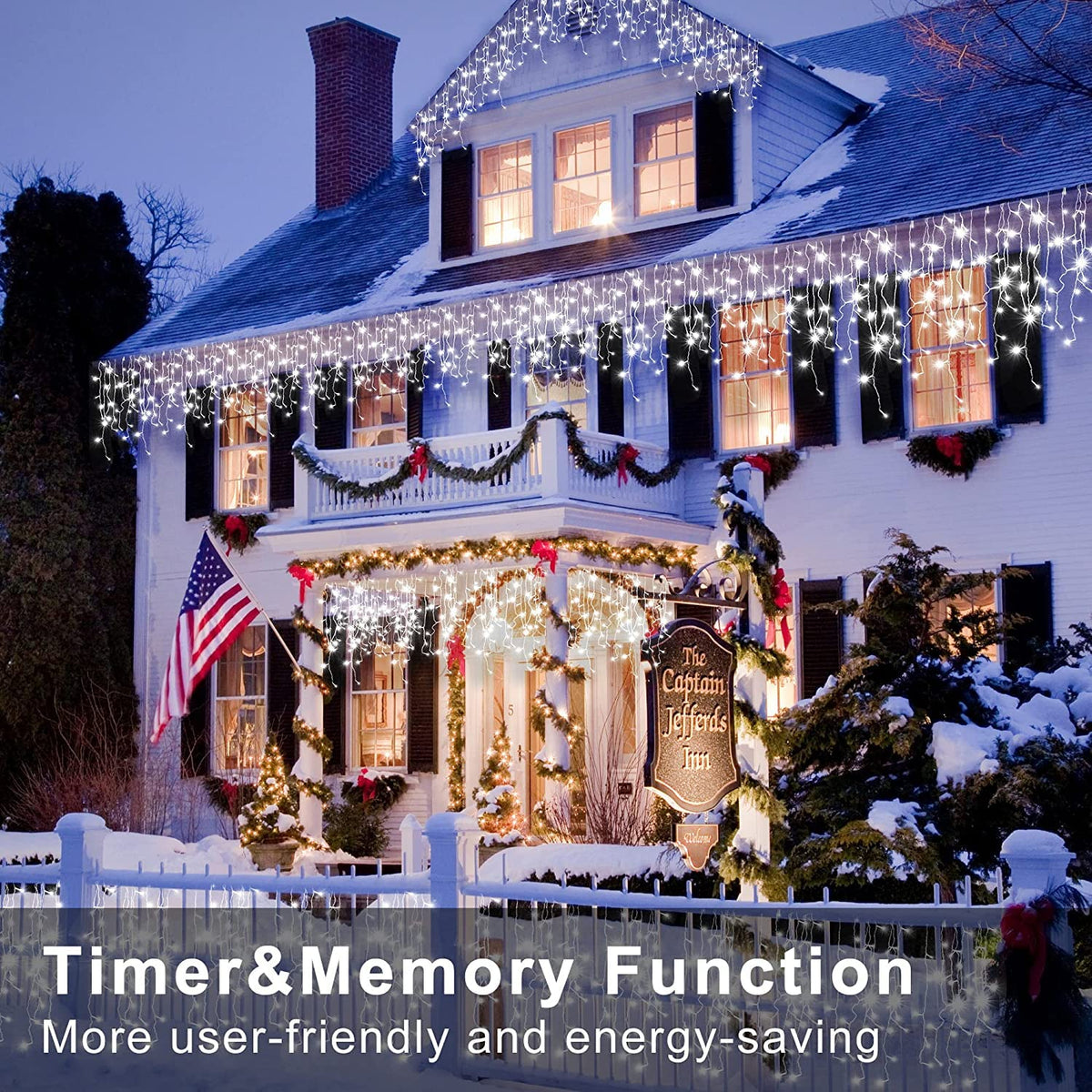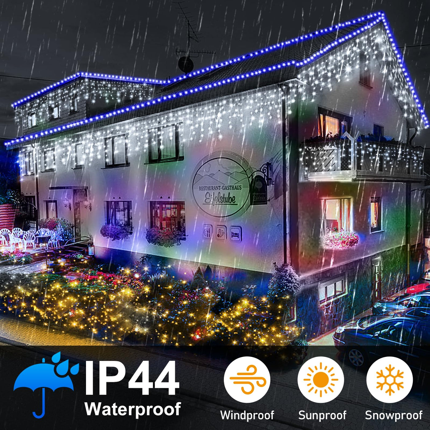Hezbjiti Christmas Lights Decorations Outdoor, 800 Led 65.6 Ft 8 Modes 150 Drops Fairy String Curtain Lights For Christmas Decor Eaves Window Party Yard Garden Indoor (Cold White)
