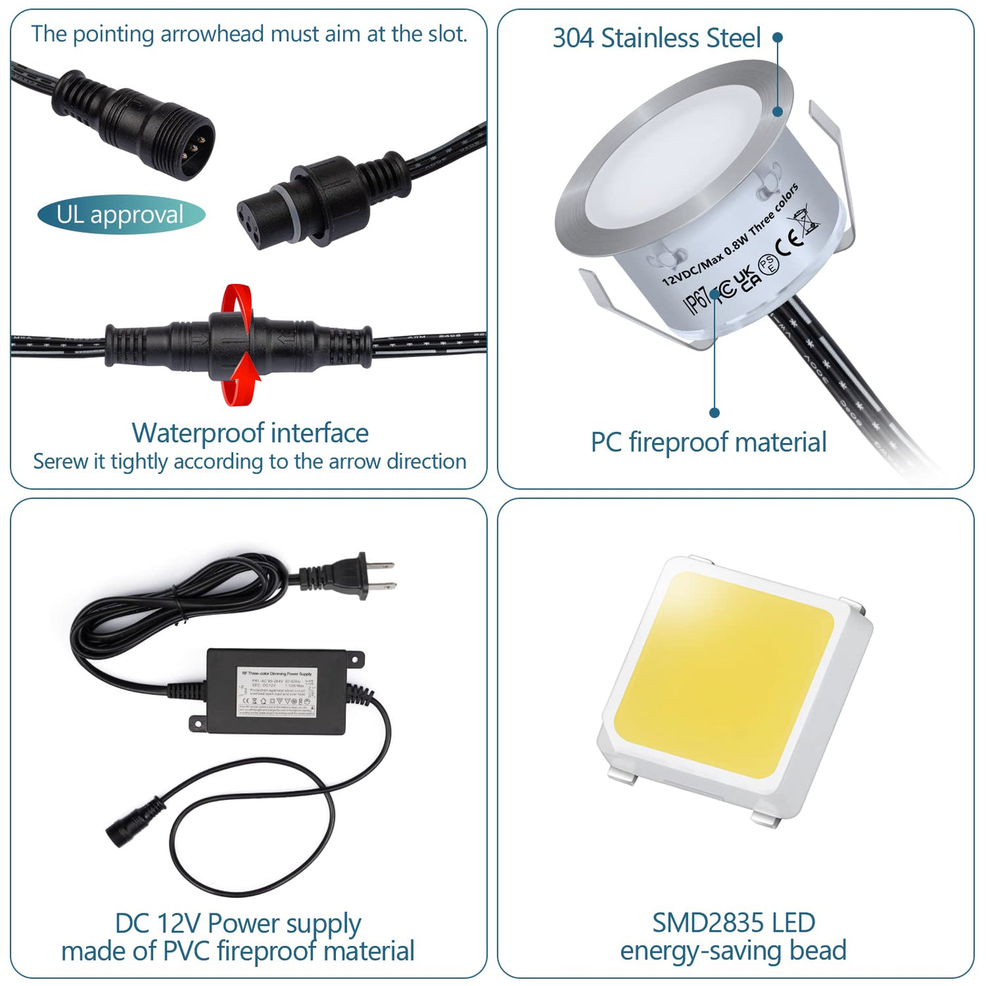 Q: Are these deck lights suitable for outdoor use?A: Yes, the HIBOITEC deck lights are rated IP67 waterproof, making them safe for both indoor and outdoor use, ensuring they withstand various weather conditions.