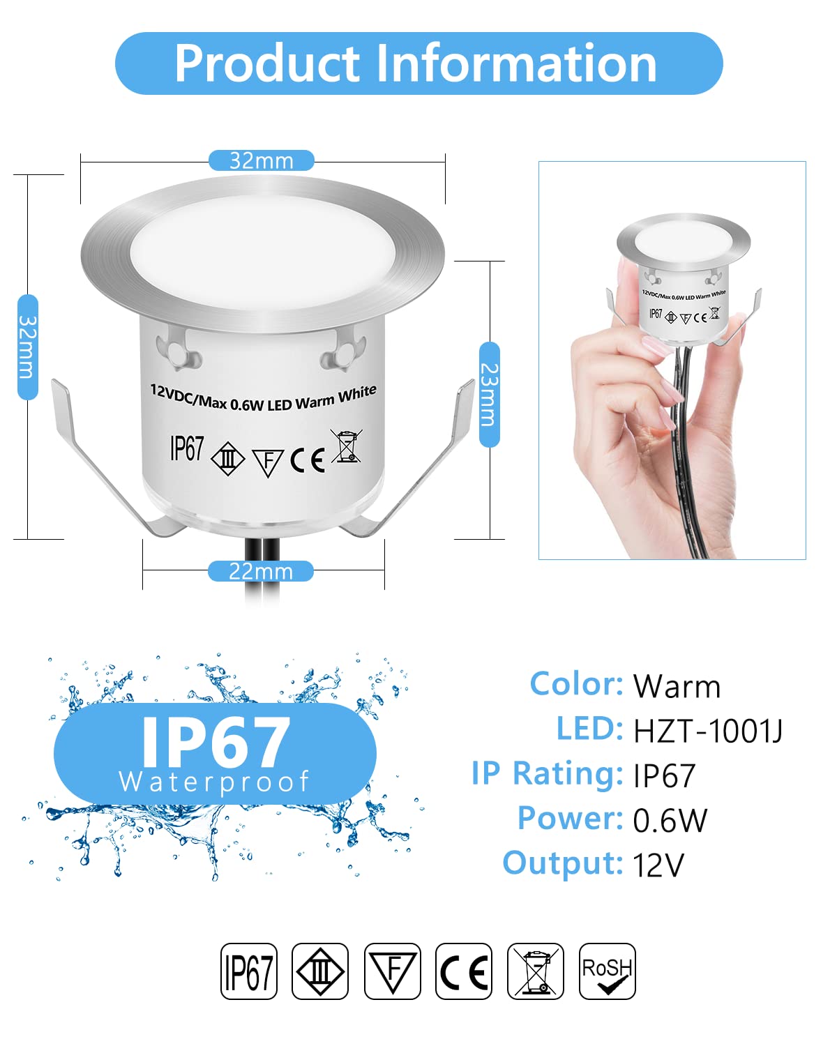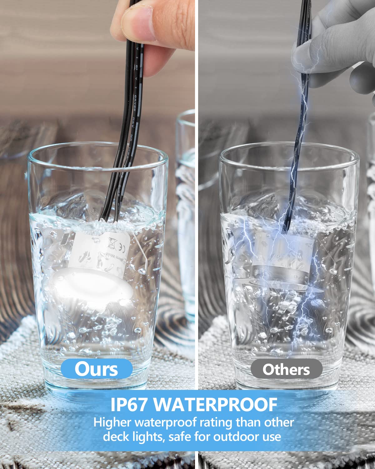 - **IP67 Waterproof & Safe**: Built to withstand the elements, HIBOITEC deck lights feature an IP67 waterproof rating, making them ideal for both indoor and outdoor use. Crafted from durable acrylic, ABS, and 304 stainless steel, these lights are fully insulated and safe, ensuring long-lasting performance.