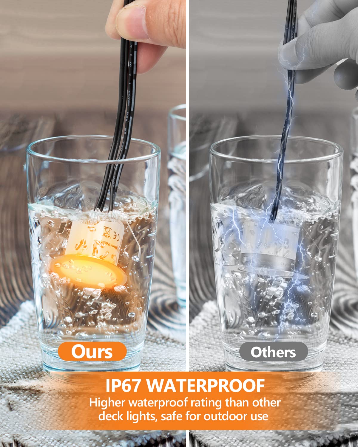 - **IP67 Waterproof & Safe**: Built to withstand the elements, HIBOITEC deck lights and cables are rated IP67 waterproof, making them suitable for both indoor and outdoor use. Constructed from high-quality acrylic/ABS and 304 stainless steel, they ensure safety and durability with fully insulated glue-filled bodies and waterproof connectors.