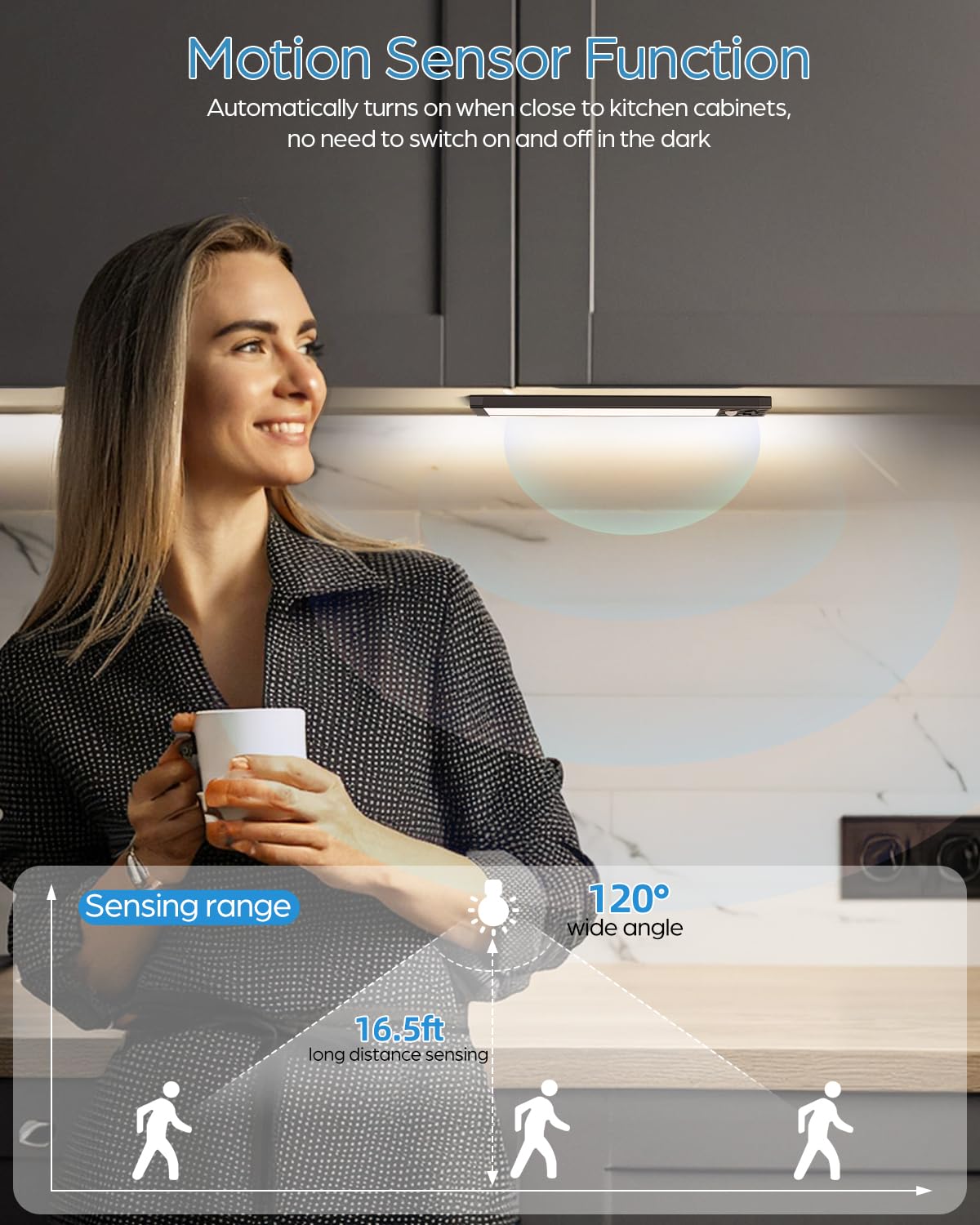 Q: How do the motion sensor lights work?A: The HIBOITEC Closet Lights feature a motion sensor that detects movement within 16.5 feet in low light or darkness. Once motion is detected, the lights automatically turn on and will turn off after 20 seconds of no motion, making them convenient for use in areas like stairwells or closets.