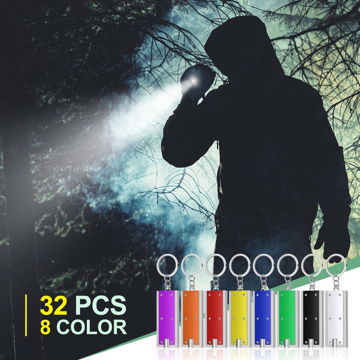 Features:Enough quantity with assorted colors:There are 32 pieces of portable key chain flash lights in 8 colors, namely, red, blue, black, purple, green, white, yellow and orange, 4 pieces for each style, rich in colors and quantity, allowing you to choose and match according to personal preference. If you want, you are able to share them with friends too.Mini and practical gift:The powerful keychain light can be a cute and practical gift for your family, friends, loved ones, colleagues, neighbors, so the gift receiver will be safer in dark and emergent situation, who will be touched by your love and care.Specifications:Material: plastic, metalColor: red, blue, black, purple, green, white, yellow, orangeSize: 2.3 x 0.9 x 0.4 inch/ 6 x 2.4 x 1 cmPackage includes:32 x LED keychain lightsNotes:Manual measurement, please allow slight errors on size.The color may exist slight difference due to different screen display.Button batteries are included.