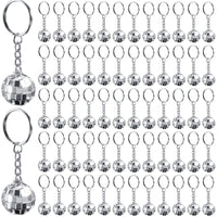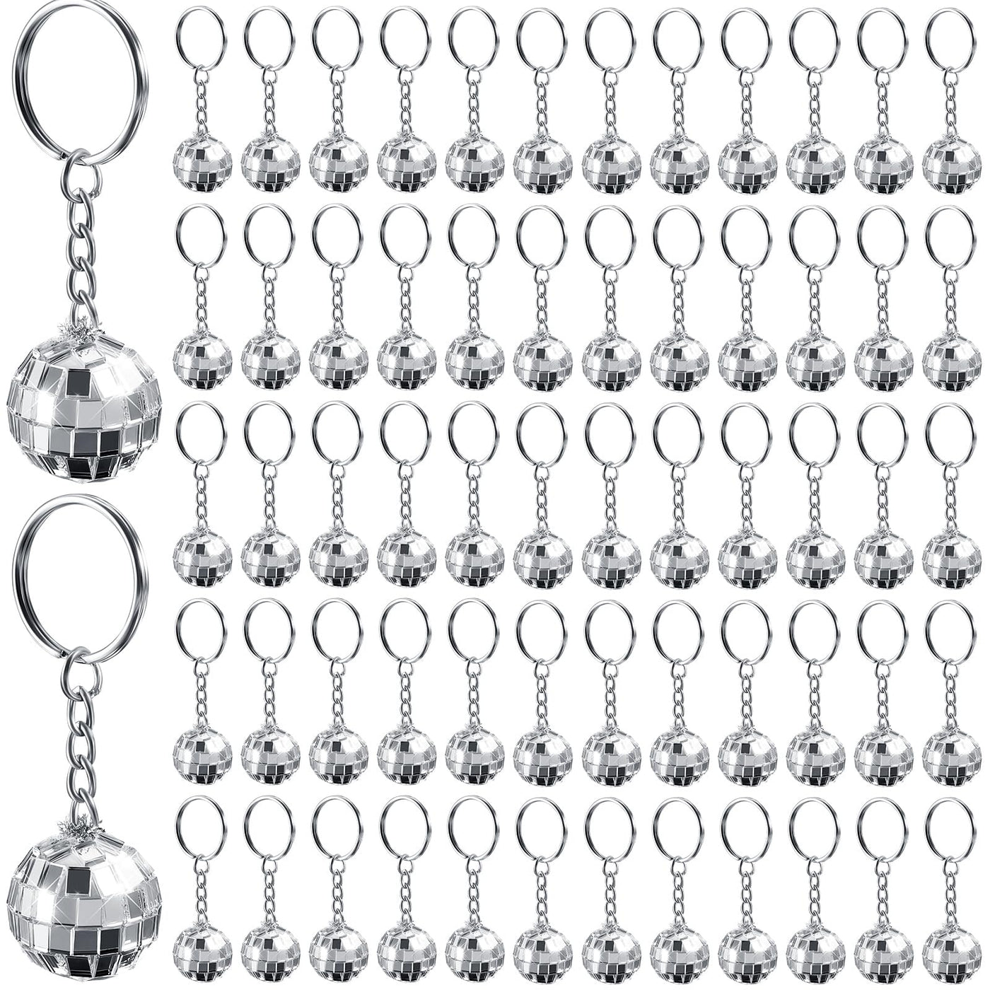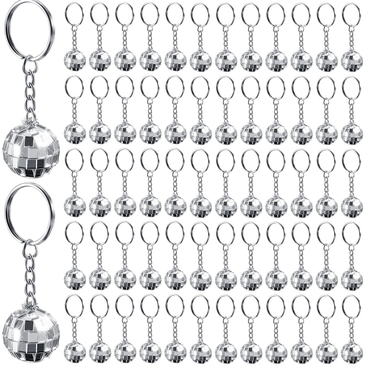 Hicarer 60 Pcs Mini Disco Ball Keychain 60s 70s 80s Disco Party Favors Glitter Silver Mirror Ball Keychain Halloween Party Favor