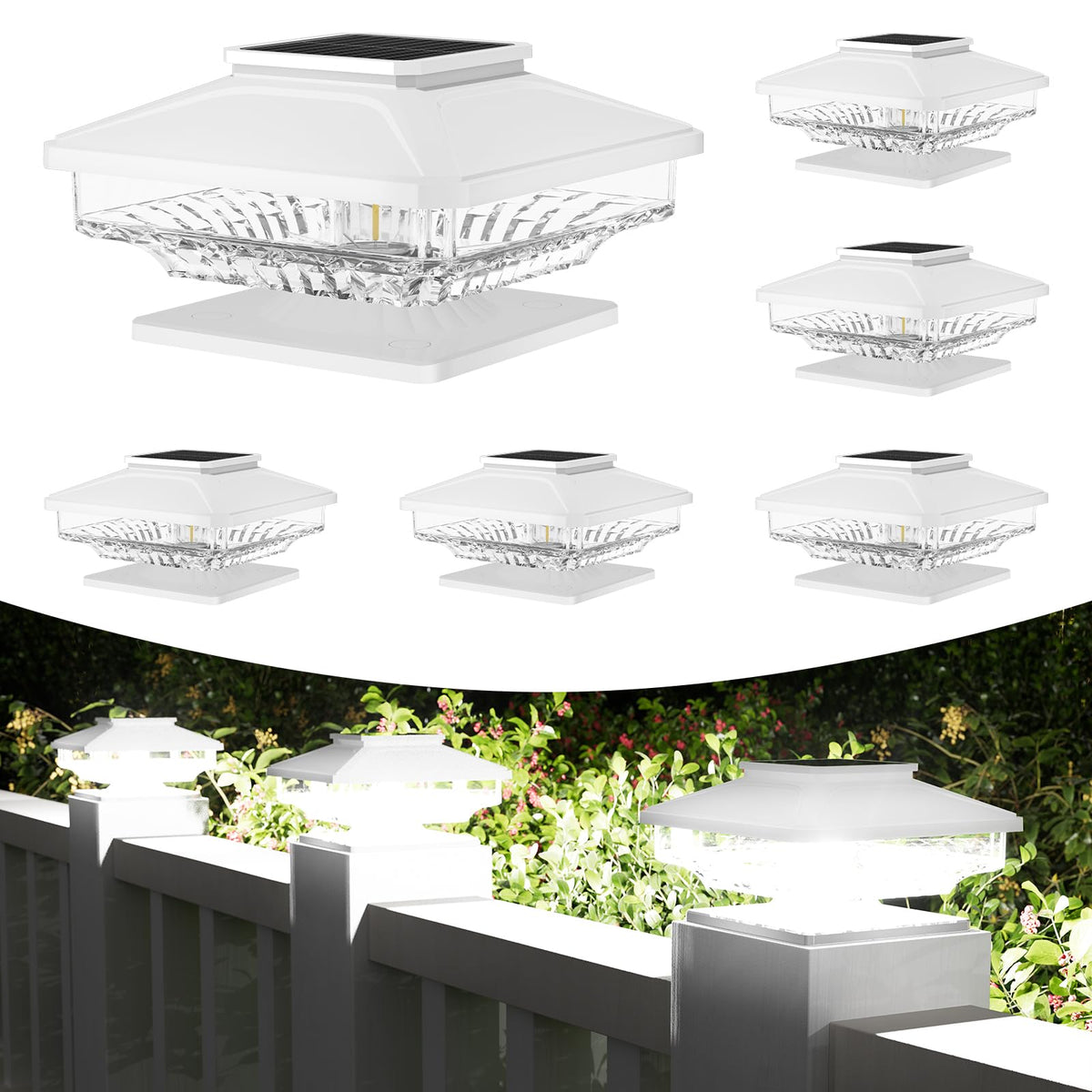High Brightness 6 Pack Post Solar Lights,[Not Hollow Post],Ip65 Waterproof 4X4 Solar Post Cap Lights, Deck Post Cap Lights,Fit 4X4 5X5 6X6 Wooden Posts For Garden Patio Fence Deck Decor White