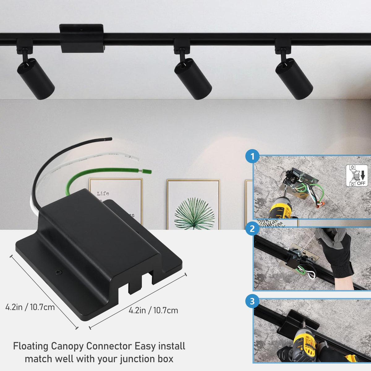 Hiiglxii 8-Light Led Track Lighting Kit With 6.6Ft H Track Lighting Rails & Floating Canopy Connector Gu10 Track Light Kit Modern Kitchen Track Lighting Fixtures Ceiling Spot Light Black (No Bulbs)