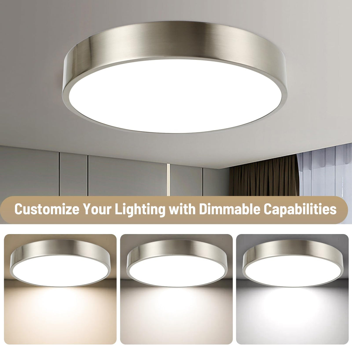 Hikaproligt 13Inch Modern Nickel Led Flush Mount Ceiling Light| 26W Low Profile Ceiling Light|3000K-5000K Dimmable Ceiling Light