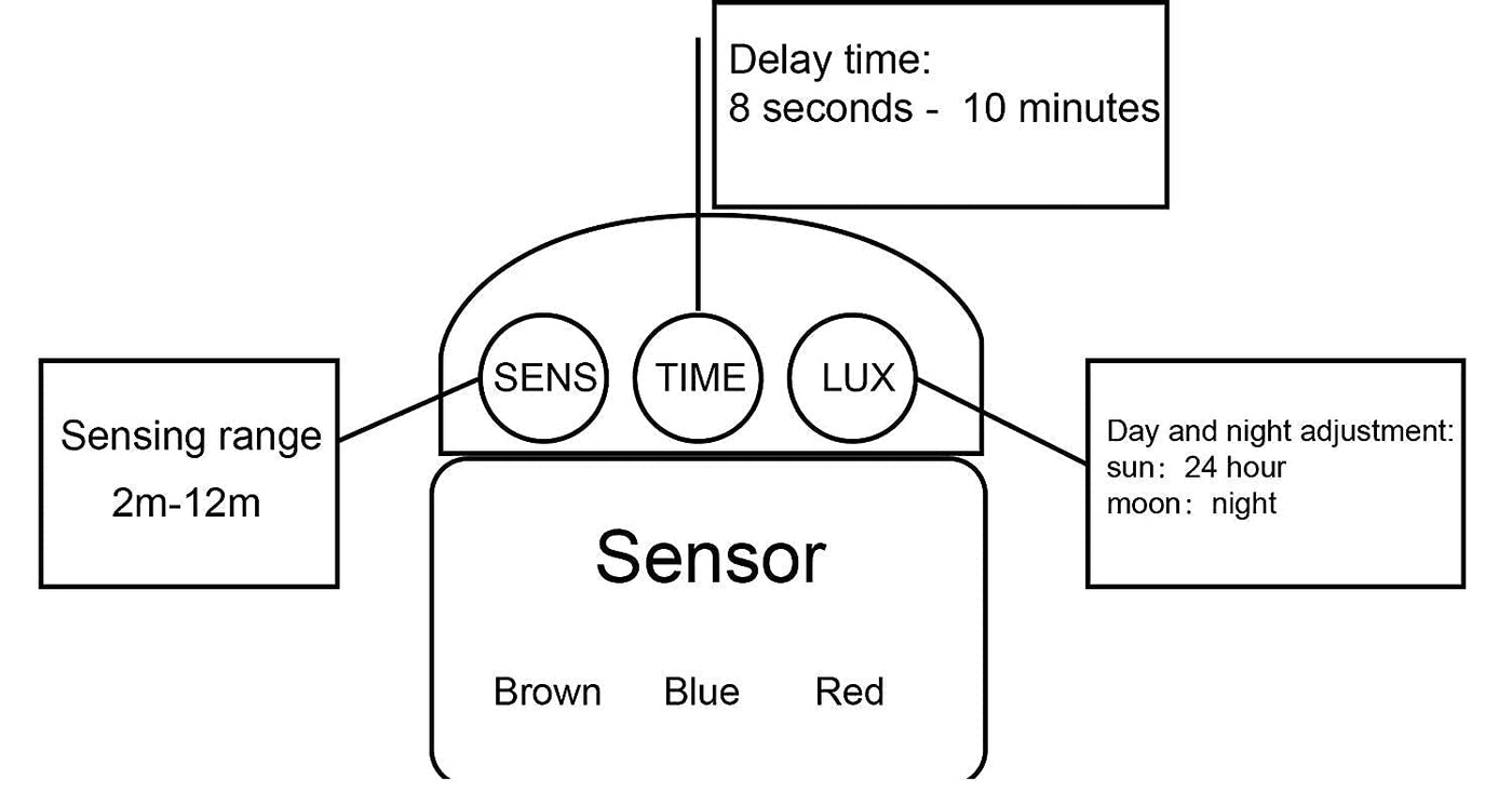 The HiLetgo Outdoor Infrared PIR Motion Sensor Switch is designed for effortless control of various lighting systems. This innovative switch features a color-coded wiring scheme: Brown for Positive/Live wire IN, Blue for Negative/Neutral wire IN, and Red for Positive/Live wire OUT. This ensures a straightforward installation process, allowing for quick integration into existing setups.