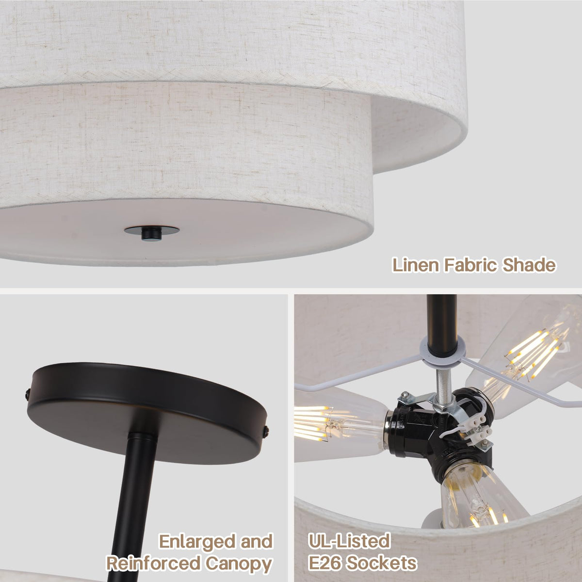 Hiluxia 18 Inch Large Semi Flush Mount Ceiling Light Fixture With Dual Drum Design, Farmhouse Fabric Linen Shade For Bedroom, Li