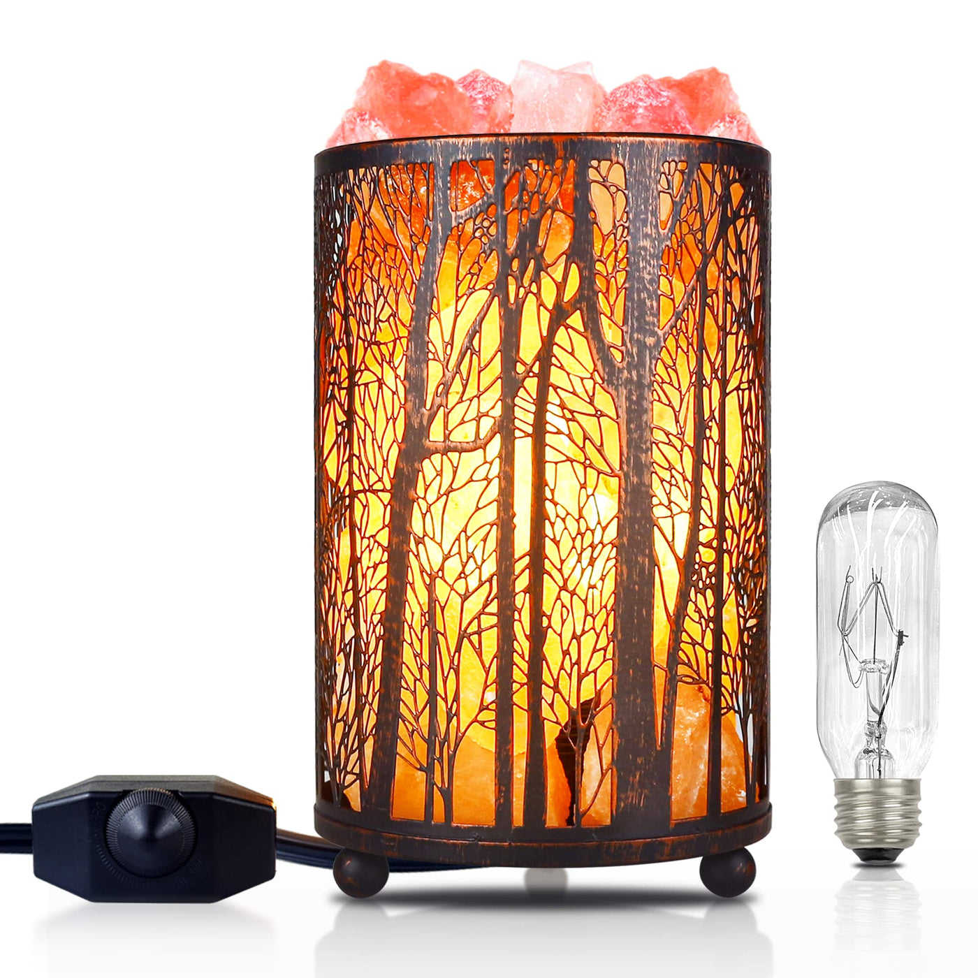 Himalayan Pink Salt Lamp, Natural Salt Rock Lamp With Retro Forest Basket And Dimmer Switch, Romantic Night Light Plug In, Decor