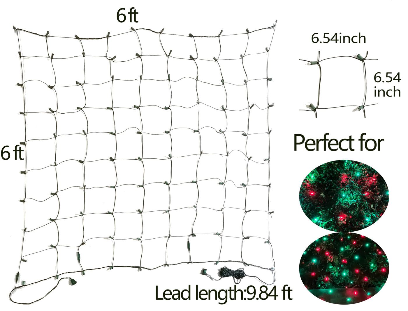 Hishiny High Brightness 144-Count 6 Ft X 6 Ft Mesh Led Lights Can Be Used Indoors And Outdoors Perfect For Bushes Or Trees. Parameter: Lighting Mode:Always On Connect The Plug To The Power Supply. Number Of Lamp Beads:144 Leds 12*12 Square Arrangement. Cable Color:Green Material: Copper Wire/Plastic Expand Size:6 Ft X6 Ft Lamp Bead Interval:6.45Inch Front Plug Lead Length:16.4 Ft Rear Plug Lead Length:1.64Ft Connectable Design:End To End Connections Up To 8 Strands Specifications:Christmas Tree Decoration Garden Shrub Decoration Outdoor/Indoor Package Included: 1 Xchristmas Net Lights 2 X Spare Fuse 2 X Spare Lamps 1 X Product Instructions 1 X Safety Instructions