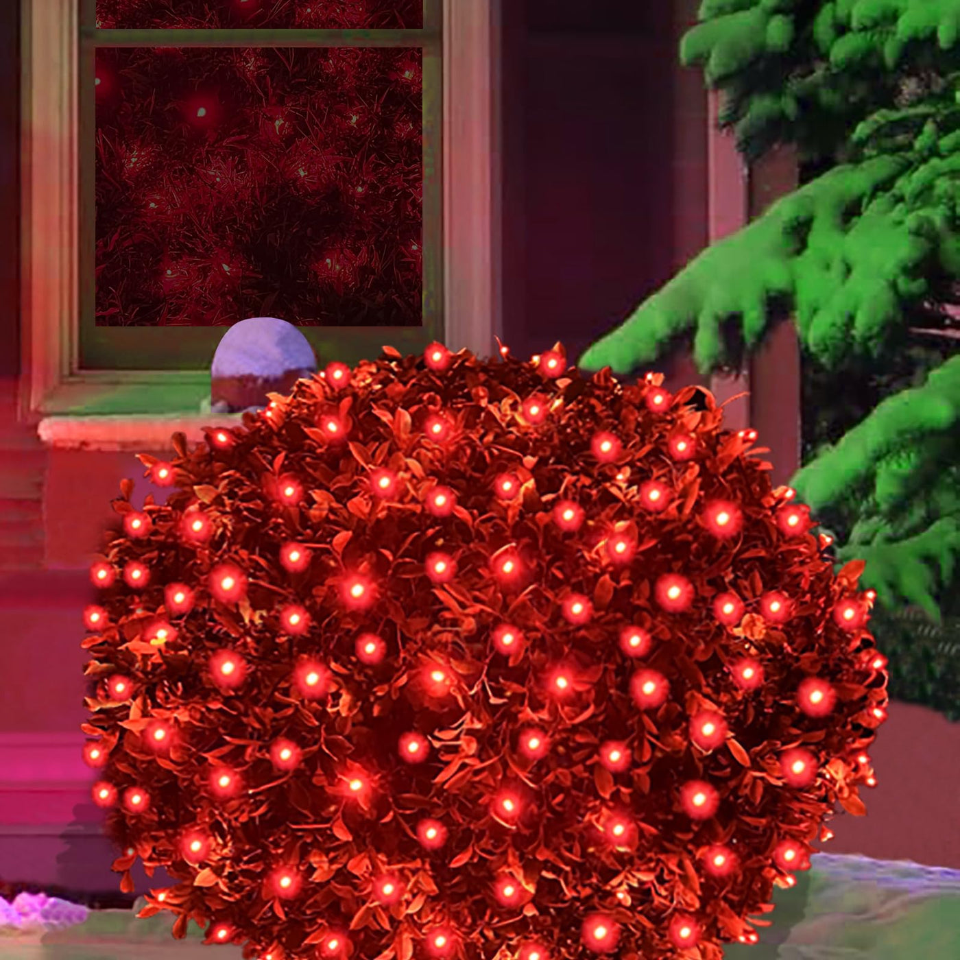 Hishiny Led Red Christmas Net Lights Outdoor 6Ftx6Ft 144Led Green Wire Connectable Indoor Outdoor Bush Mesh Net Lights String For Halloween Christmas Party Shrub Yard Tree(Red)