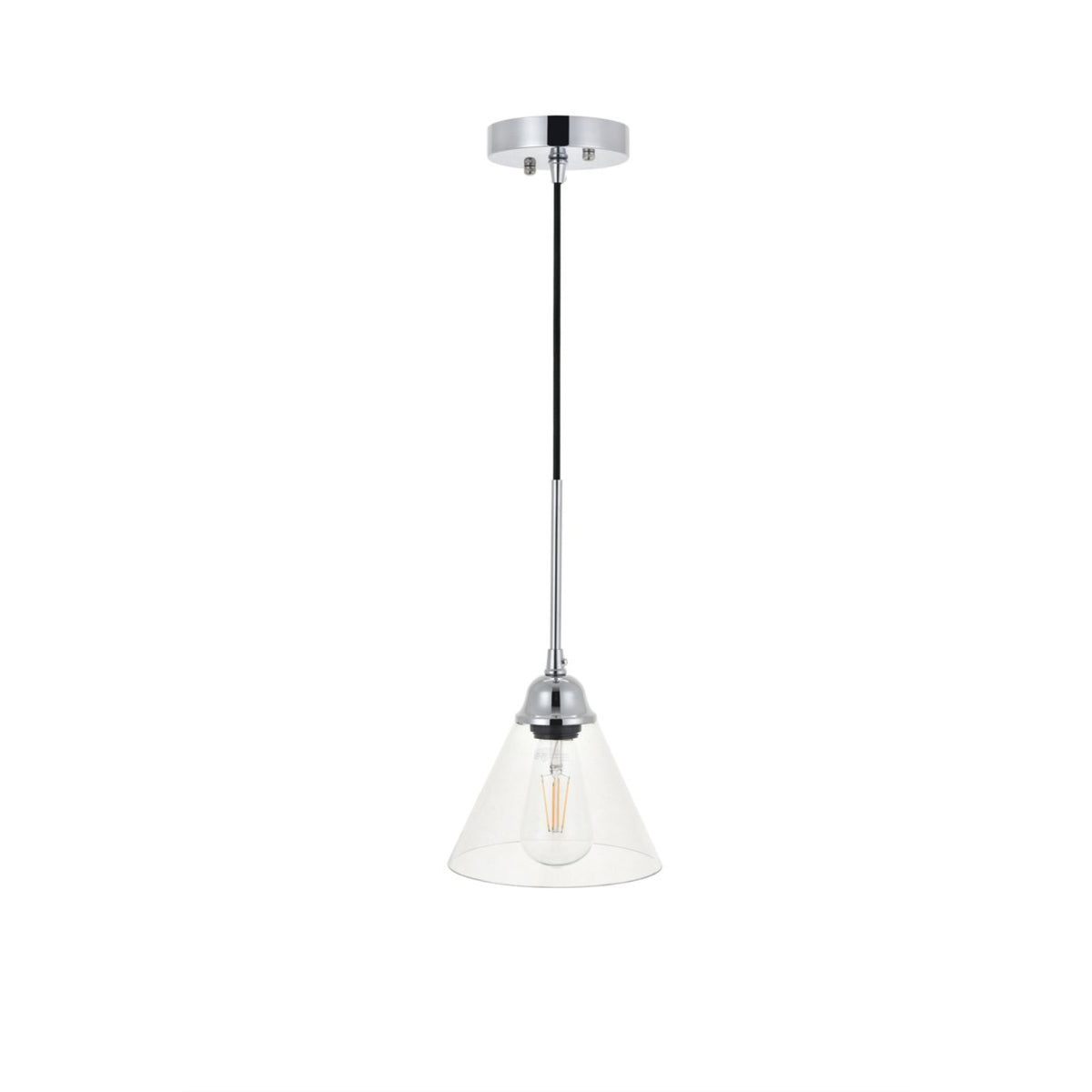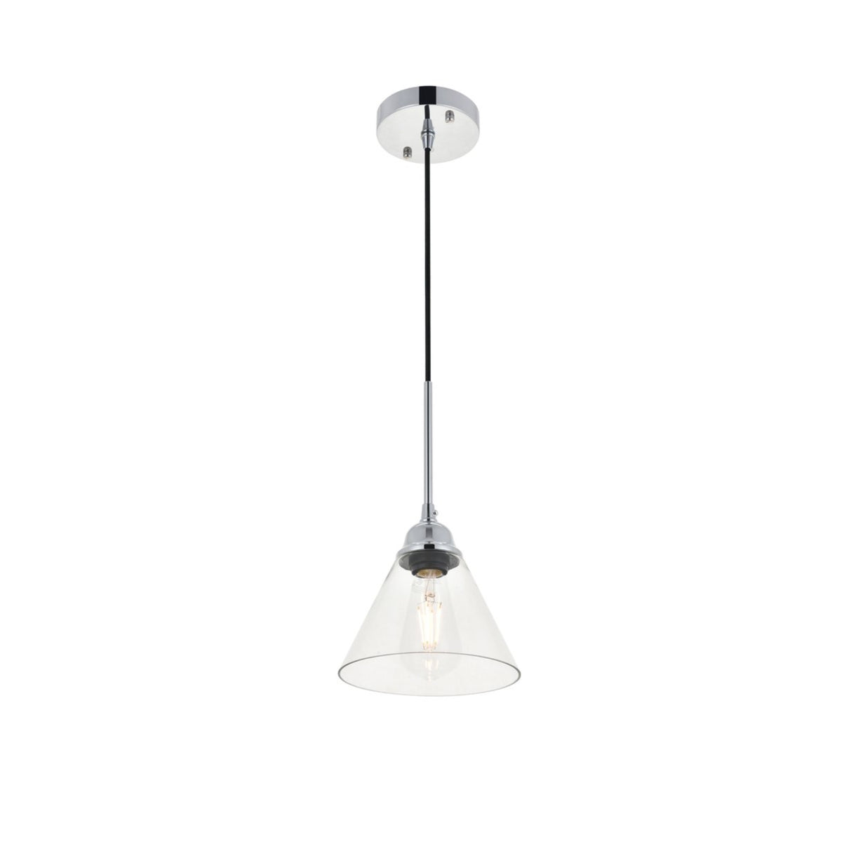 Take a step back through time with the Histoire pendant lamp in a chrome finish. The ever delightful adjustable cord supports the clear glass cone shade while light illuminates the surrounding area, creating a beautiful display of charm. A perfect pendant lamp to act as your guide in your foyer or living room, or even to light up your bathroom walls, you will always enjoy its captivating light. Proposition 65 WARNING: This product can expose you chemicals including lead and lead compounds, which are known to the State of California to cause cancer and birth defects and other reproductive harm.. For more information go to: www.P65Warnings.ca.gov.