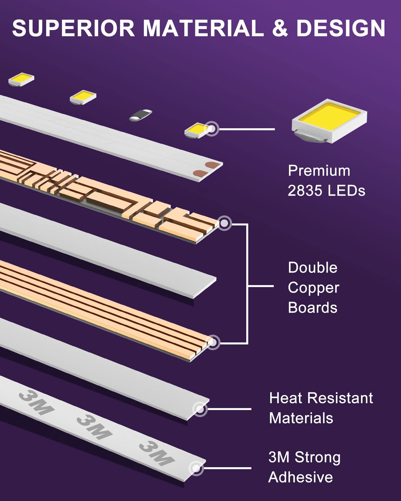 Q: What is the material of the LED Strip Lights?A: The LED Strip Lights are made from a durable PCB board for enhanced longevity.