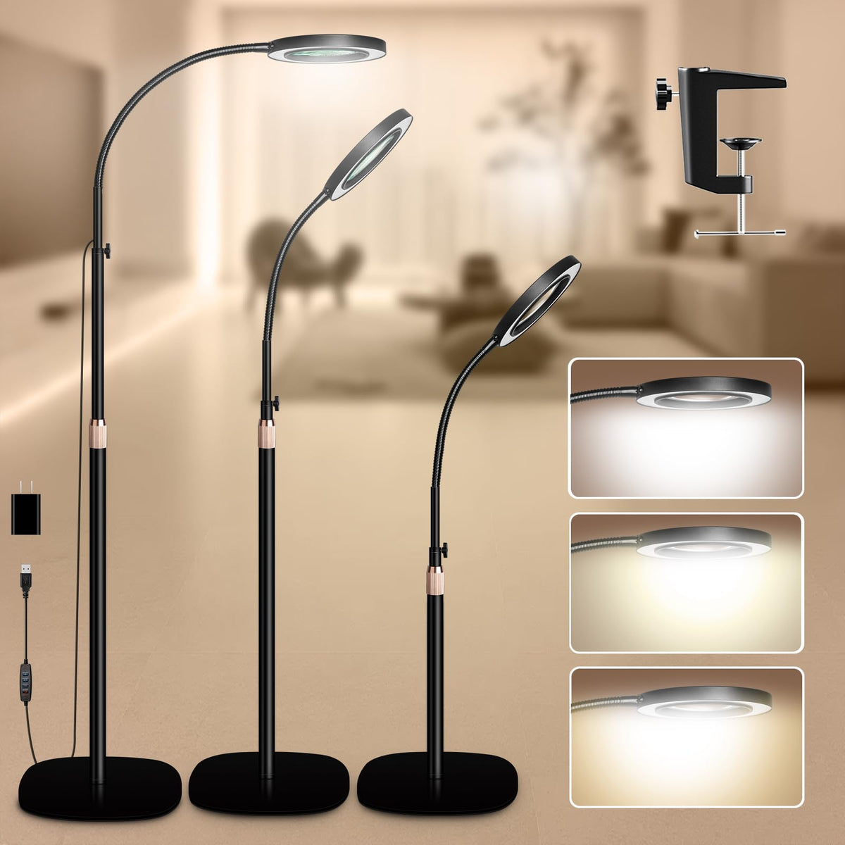 Hitti 10X Floor Magnifying Glass With Light, Flexible Gooseneck Magnifying Floor Lamp, 3 Color Modes Stepless Dimmable Led Light