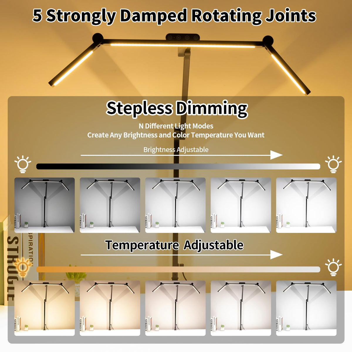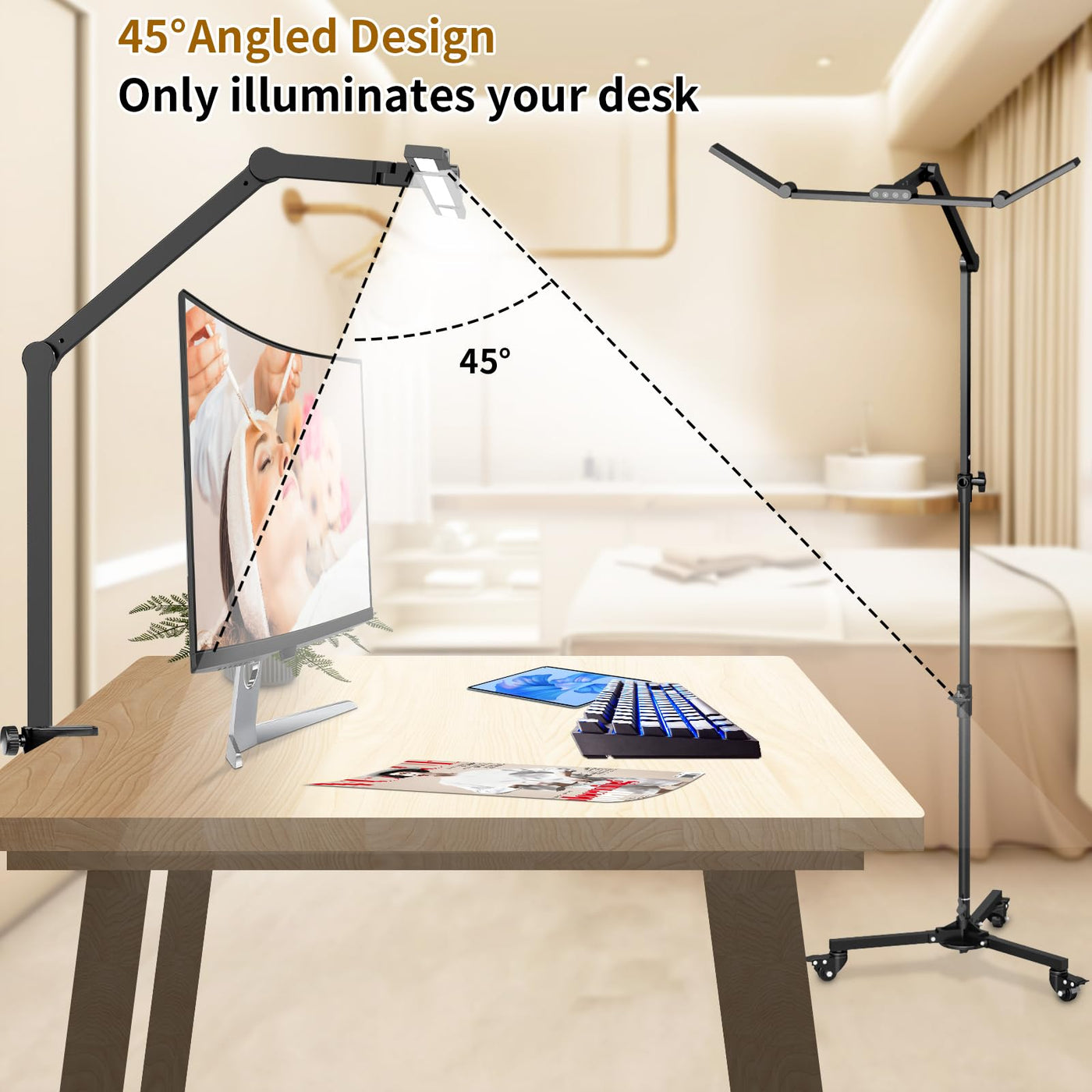 Hitti Lash Light For Eyelash Tech, 2-In-1 Led Floor Light And Clamp, Bright Foldable Half Moon Light, Stepless Dimming 3 Color E