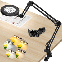 Elevate your magnification experience with this versatile magnifying glass with light and stand. Designed for hands-free operation, this magnifier lamp boasts a sturdy metal base that keeps it securely in place on your desk. The built-in LED light illuminates your work area, ensuring optimal visibility for detailed tasks like DIY crafting, reading, painting, sewing, and hobby work. With adjustable magnification and a flexible gooseneck arm, you can effortlessly position the lens for maximum precision and comfort. Bid farewell to eye strain and embrace the convenience of this indispensable tool that enhances your productivity and enjoyment of intricate projects.