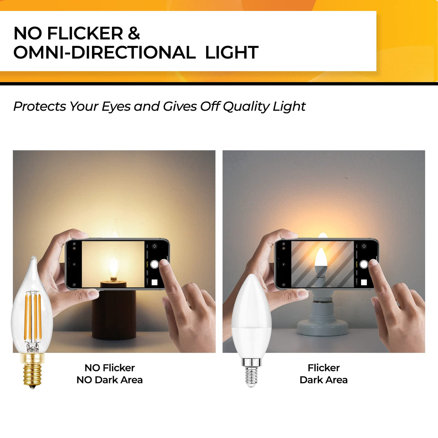 Led Flame Tip Style: Classic Design With Clear Glass And well-made Filament Enhances The Aesthetic Appeal Of Your Lighting.