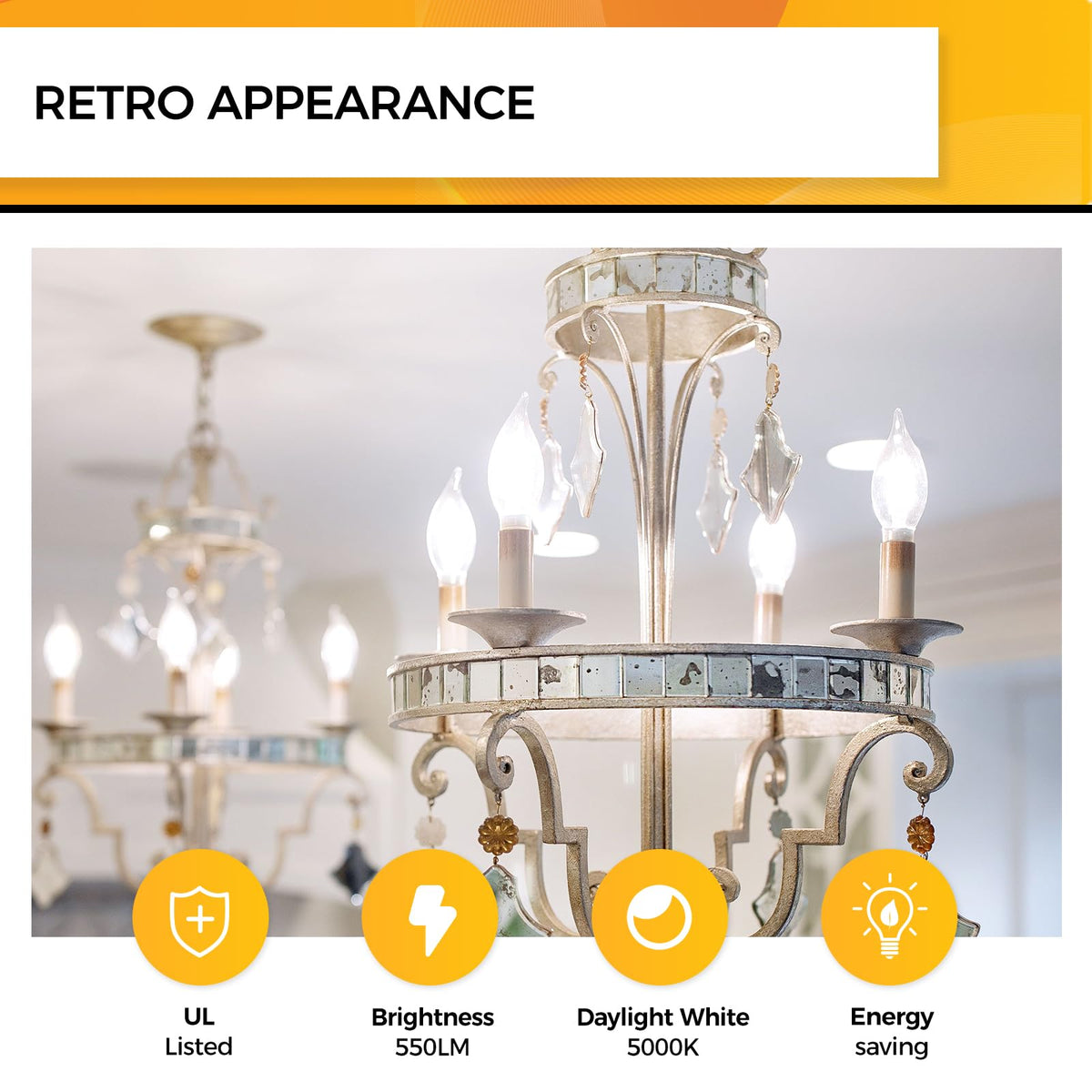 The Hizashi 6W E12 Flame Tip LED Candelabra Bulb is designed to enhance your lighting experience while providing energy-efficient illumination. Ideal for various settings, this bulb replaces traditional 60W incandescent bulbs with a bright, 360-degree light output, making it perfect for homes, offices, and commercial spaces.