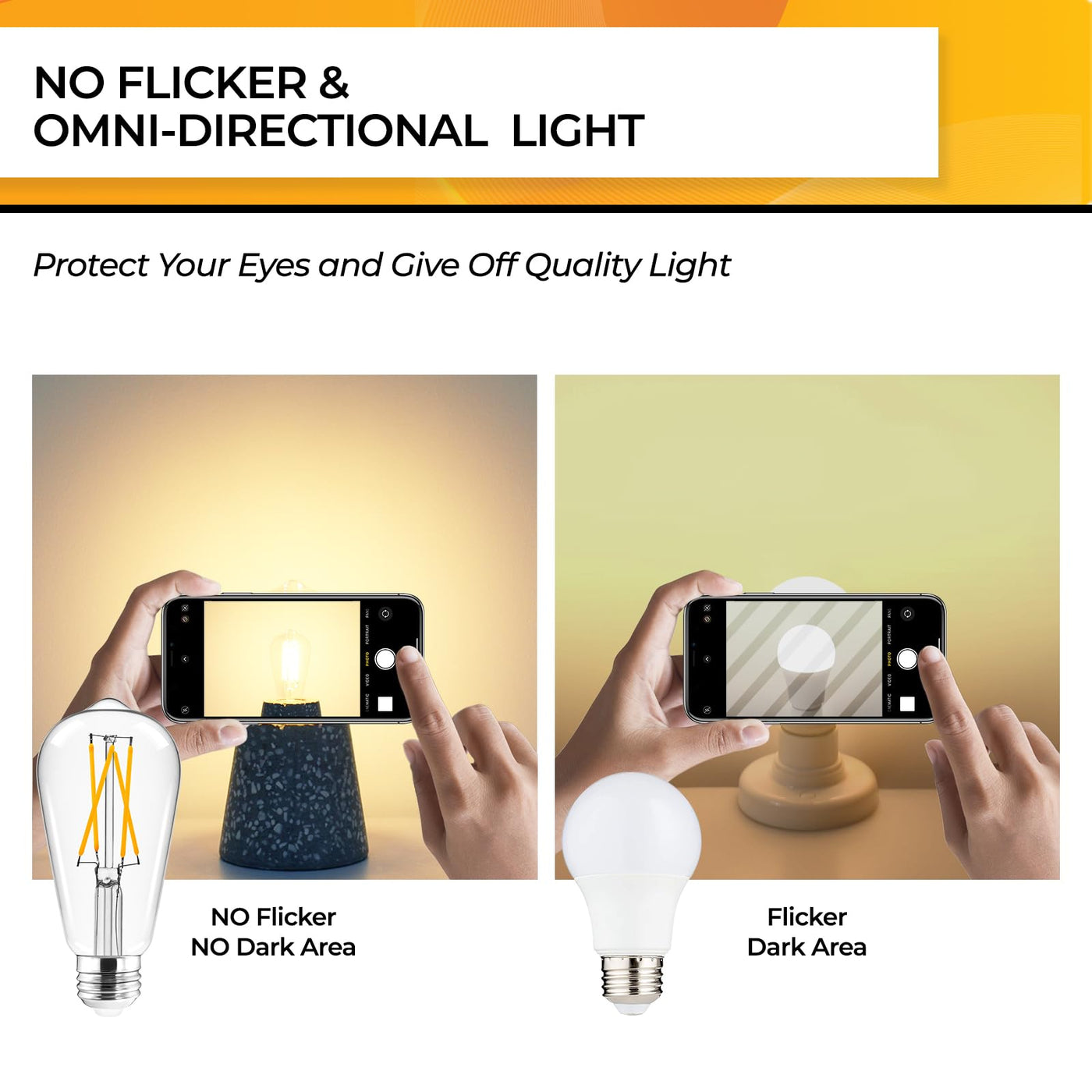 Q: Are the Hizashi Vintage LED Edison Bulbs dimmable?A: Yes, the Hizashi Vintage LED Edison Bulbs are fully dimmable and are compatible with over 90% of dimmers on the market, allowing you to adjust the brightness smoothly from 10% to 100%.