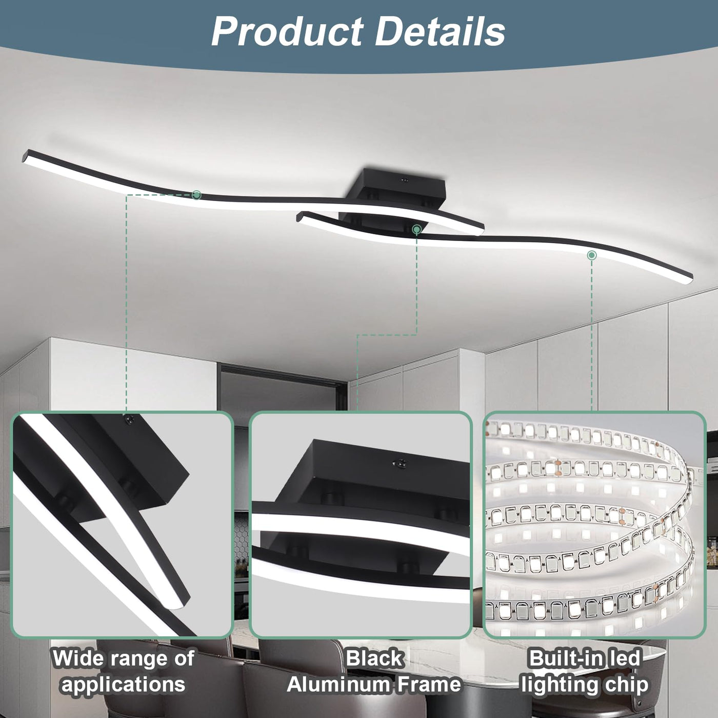 Hlilceh 39.37Inch Linear Ceiling Light 6000K Black Modern Ceiling Light Fixture 28W Long Flush Mount Ceiling Lamp For Hallway, K