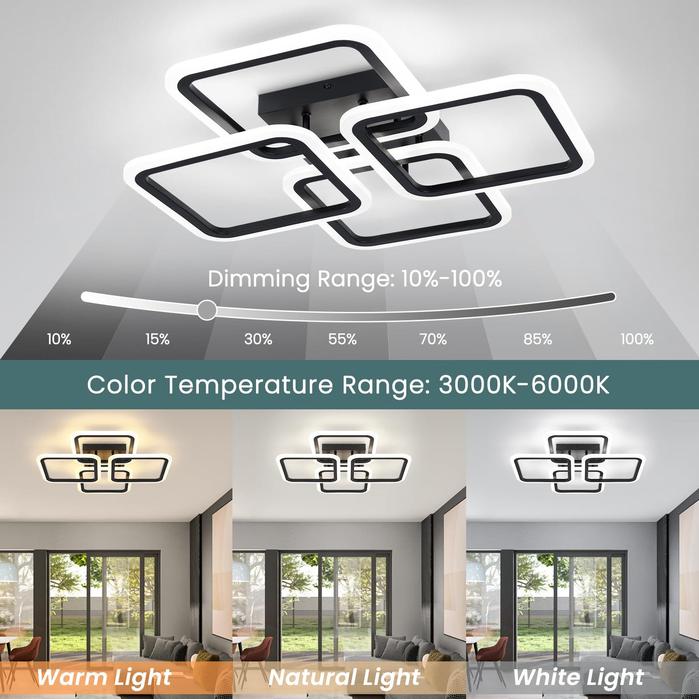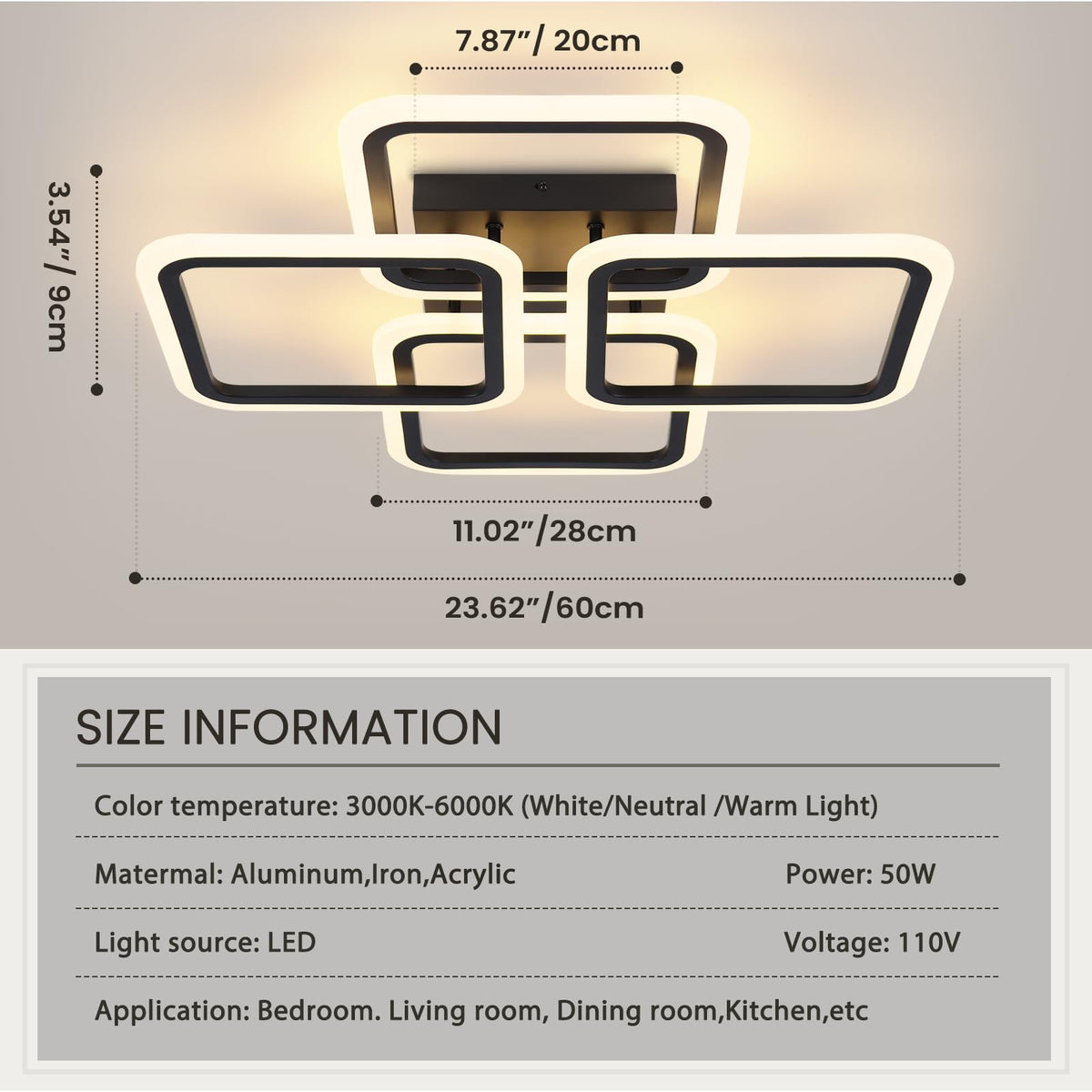 HLILCEH LED Ceiling Light 50W Dimmable Square Flush Mount 23.6inch Black Acrylic Model CL-4FDBK-D
