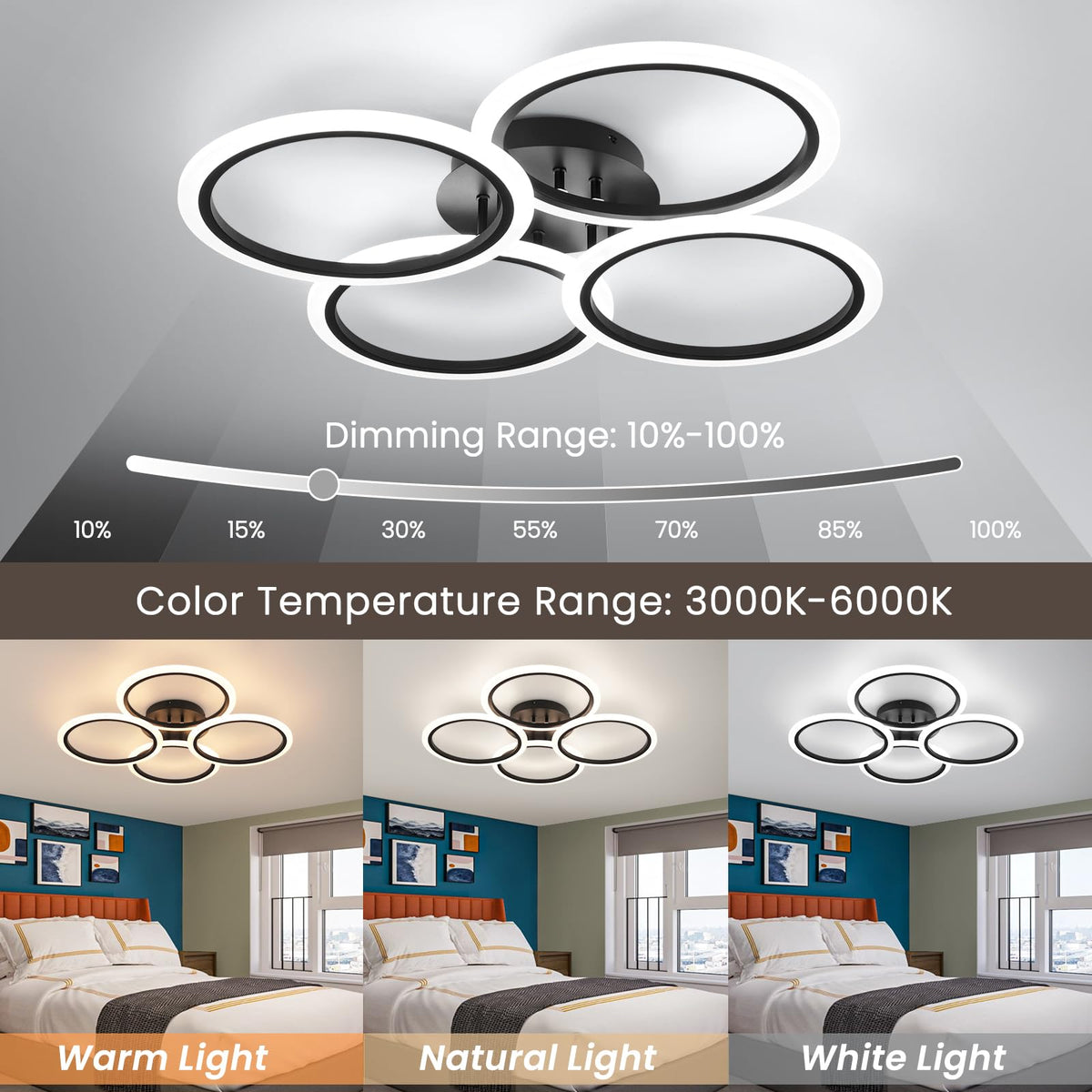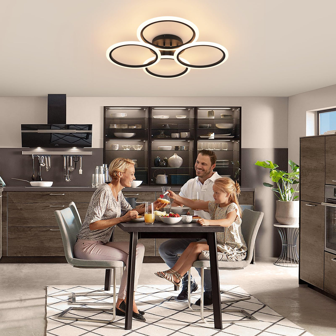Q: Is the design of this ceiling light suitable for modern interiors?A: Yes, the stylish four-ring design of the ceiling light is perfect for modern interiors, enhancing any space's aesthetics.