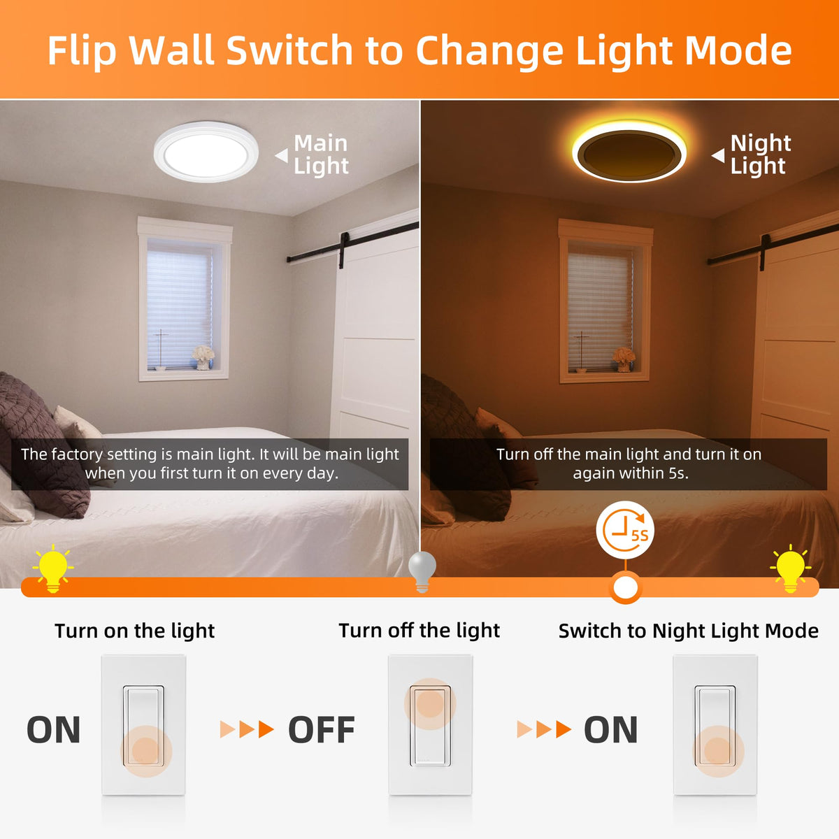 Hlite13 13 Inch Led Flush Mount Ceiling Light Fixture With Night Light, 24W, 2600Lm, 3K/5K Cct, Dimmable Round Modern Ceiling Li