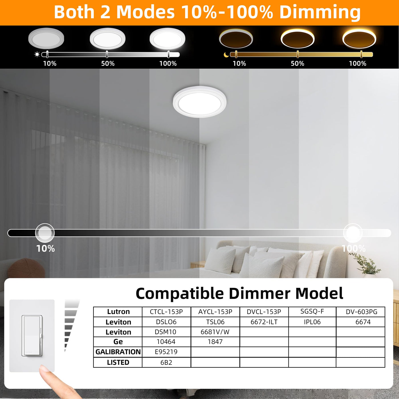 Q: Is the Hlite13 ceiling light dimmable?A: Yes, the Hlite13 ceiling light features smooth dimming capabilities, allowing you to adjust brightness from 10% to 100% without any flickering or buzzing. It is compatible with most TRIAC dimmers available on the market.