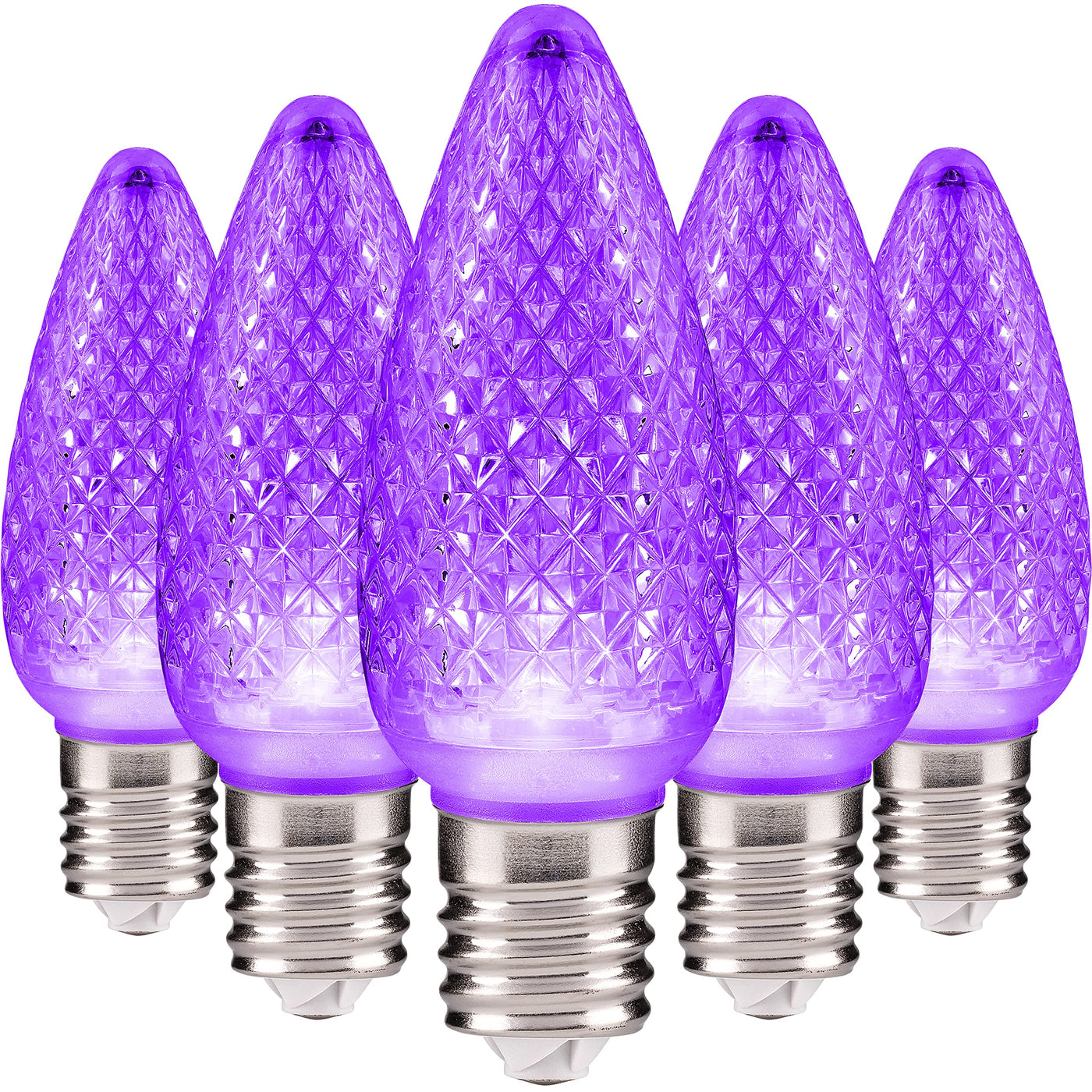 Hlo Lighting Set Of 25 Purple C9 Led Christmas Lights | Faceted Led Bulbs For Indoor & Outdoor Use | Durable Replacement C9 Bulb