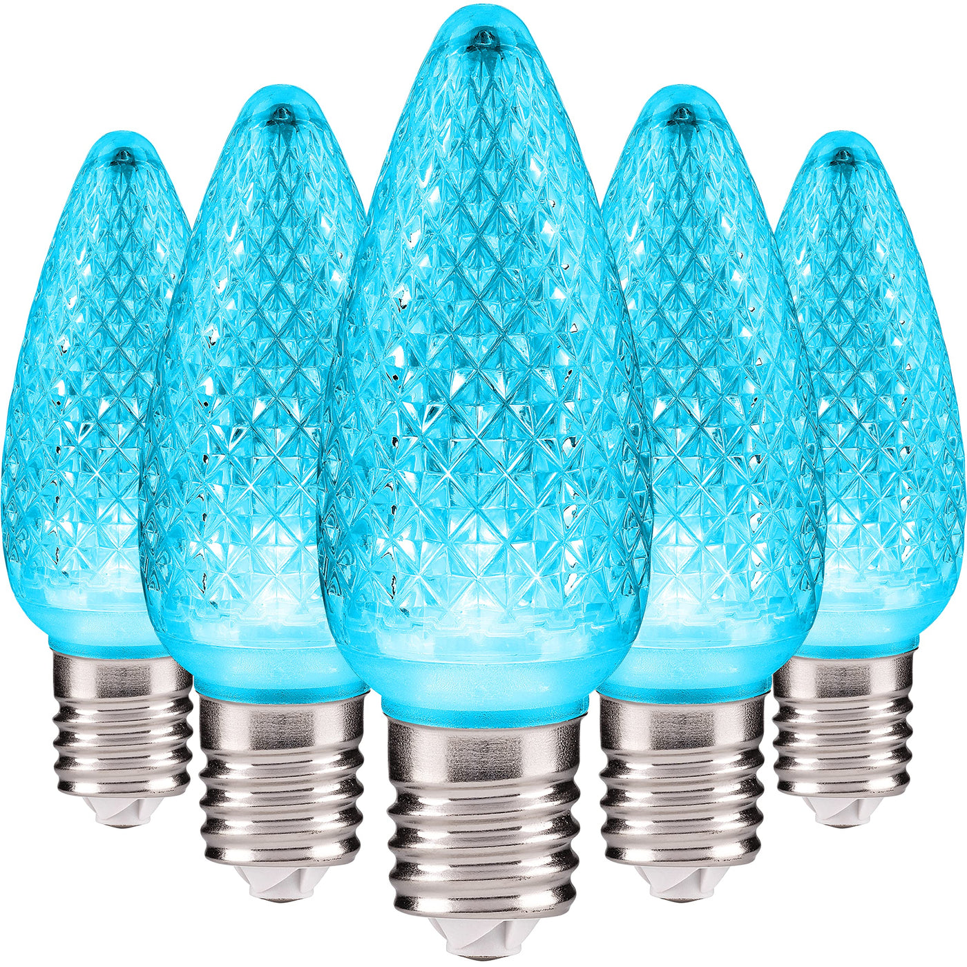 Hlo Lighting Set Of 25 Teal C9 Led Christmas Lights | Faceted Led Bulbs For Indoor & Outdoor Use | Durable Replacement C9 Bulbs