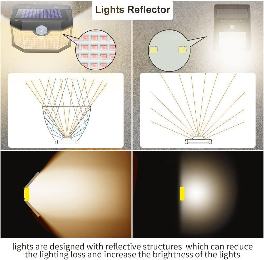 HMCITY 120 LED Outdoor Solar Lights with Motion Sensor, IP65 Waterproof, Front Button 4Pack, Warm White, Model JY2440