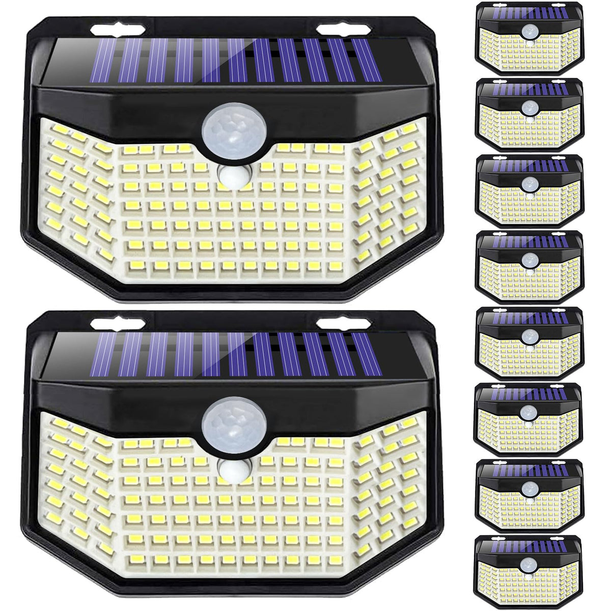Hmcity Outdoor Solar Lights 120 Led With Motion Sensor And 3 Lighting Modes Ip65 Waterproof 130 Wide Solar Wall Lights Powered For Garden Patio Yard(Front Button 10Packs Daylight White)
