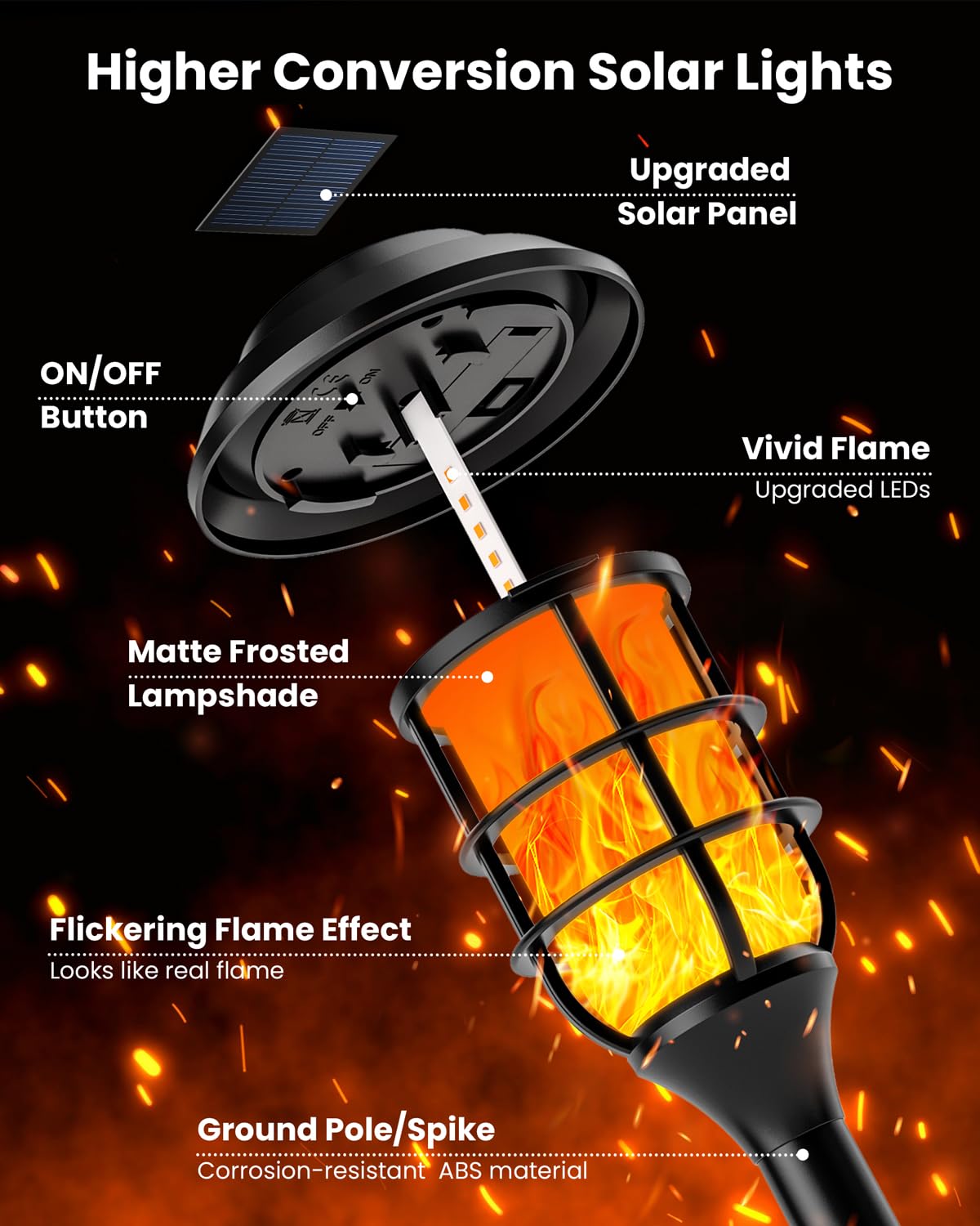 Hmdecor Solar Lights Outdoor, 3 Pack Solar Torch With Flickering Flame, Waterproof Garden Lights For Yard, Patio, Pathway