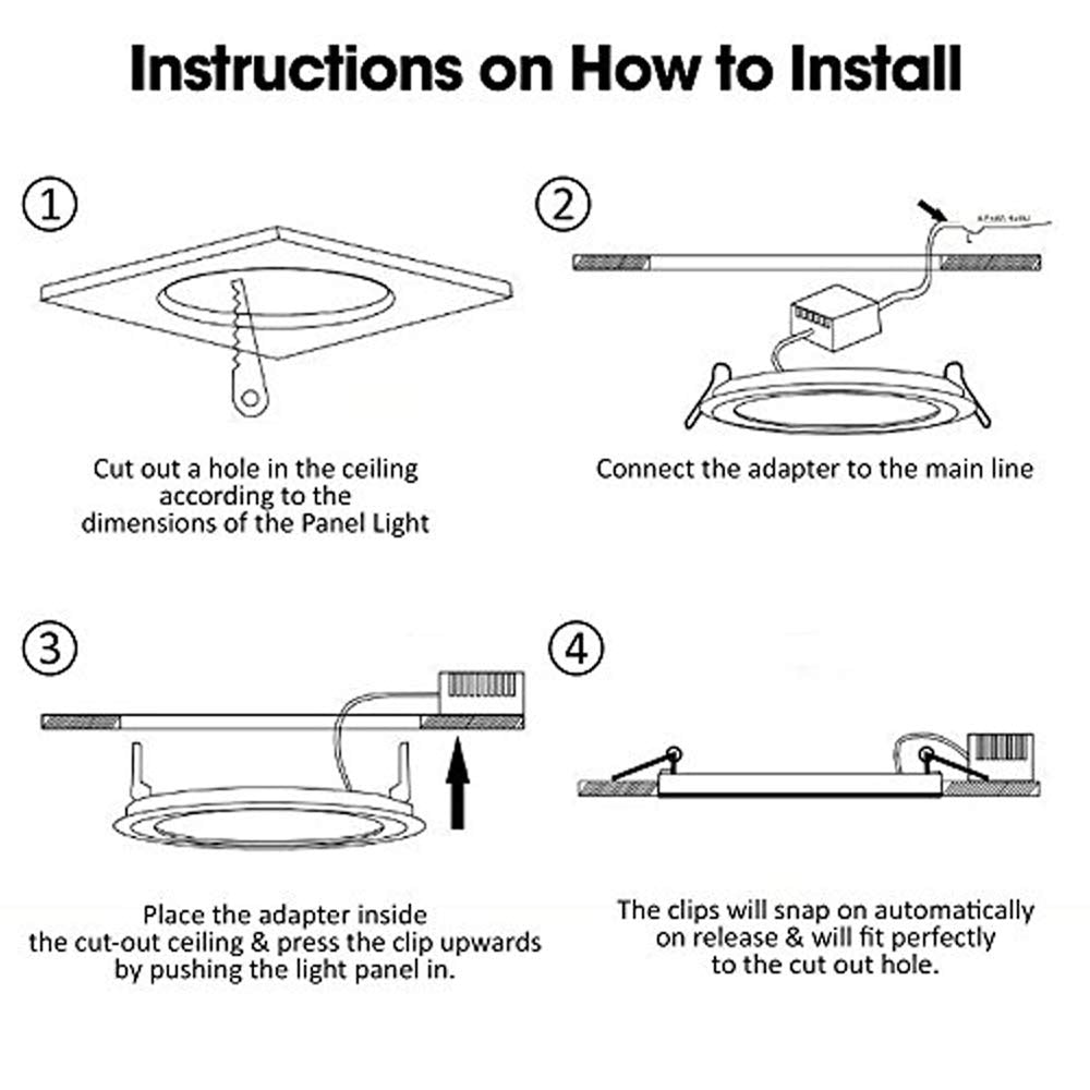 Specification Watt: 12W Cut-Hole:6Inch Led Type : 2835 Power Factor(Pf): >97% Color Rendering Index(Cri): > 80 Input Voltage: Ac85-265V Beam Angle: 120~180 Degrees Power Supply: Stonger Version Average Life: 50000 Hours Cct:6000K~6500K Material: Die Casting Aluminum Application Areas Living Room Bedroom Kitchen Washroom. Conference Meeting Room Show Room Showcase. School University Hospital Hotel. Supermarket Department Store Etc. How To Choose The Led Recessed FixtureS Color? 3000K: Used In Family Hotels Coffee Shops And Other Warm And Sweet Environment Required. 6500K: Used In Office Working Area Shopping Mall And Other Commercial Area Or Some Place Where Need Super Bright Attention Please! *If You Want To Install Panel Led Lights In Bathroom Please Not In Shower Place But In Dry Side. *As Their Size Please Be Careful About Size It Have Front And Back Size. Your Cut-Hole Size CanT Overtake Its Front Size. How To Install It? 1.First Install Two Spring Loaded Clips In Ceiling Downlights. 2.Connect Power Supply With Household Electrical Wire(We Have Updated The Power Supply). 3.Put Ceiling Lights Into The Hole. 4.The Spring Loaded Clip Automatically Clasp The Ceiling Finish. The Clips Have Been Attached Already. Each Box Contains 10 Pcs Of The Lamp And 10 Drivers.