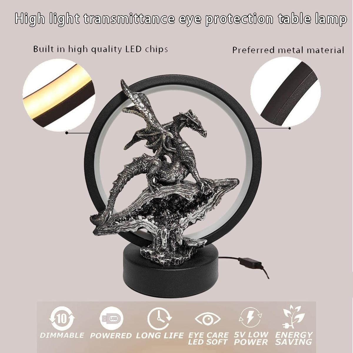Hmusnwol Dragon Lamp Collectible Decor-Dungeons And Dragons Gifts - 6.15 Inch Led Circle Table Lamp For Dragons Lover,Bedroom/Bo