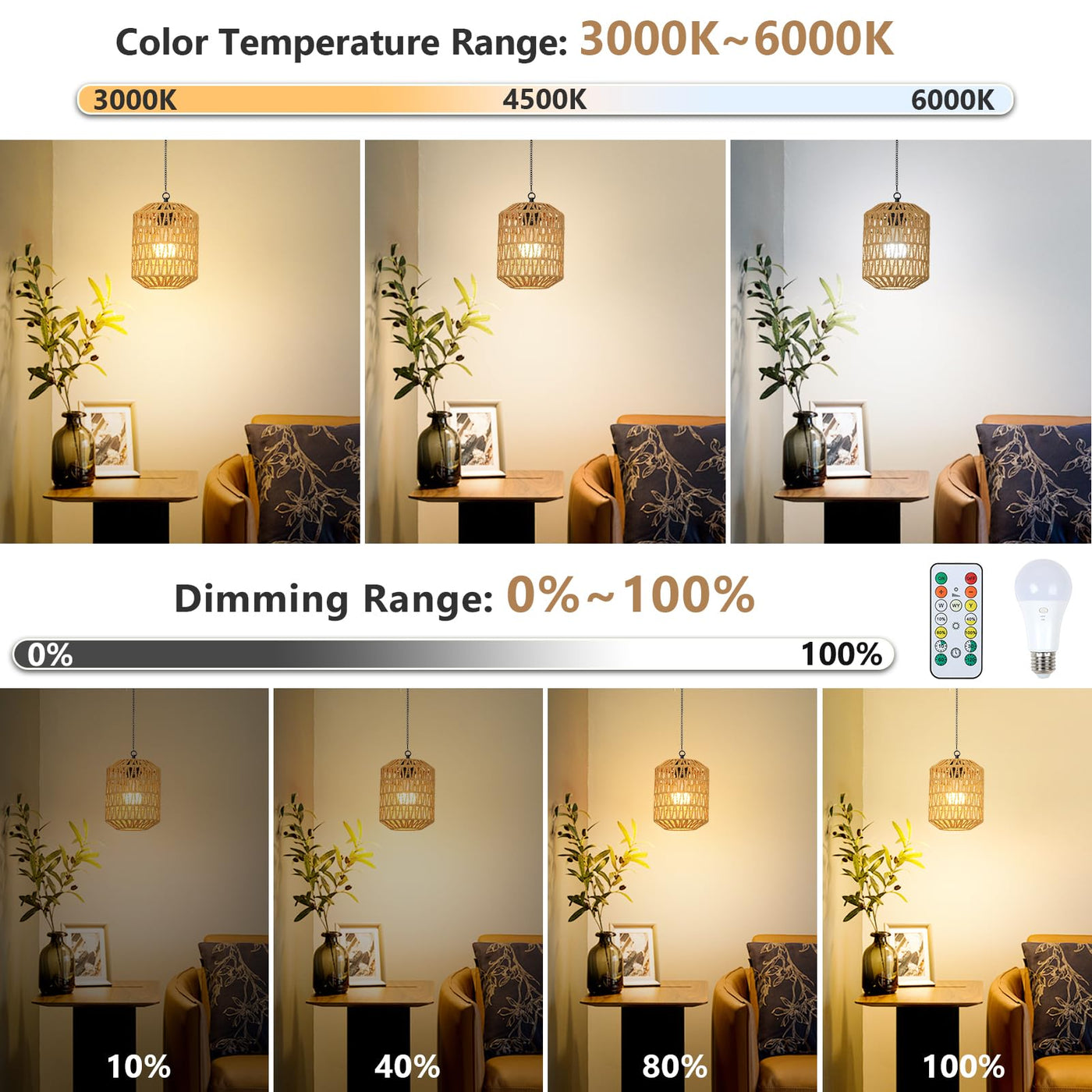Color Temperature Adjustments: Choose from three color temperatures: 3000K, 4500K, and 6000K to create the perfect ambiance.