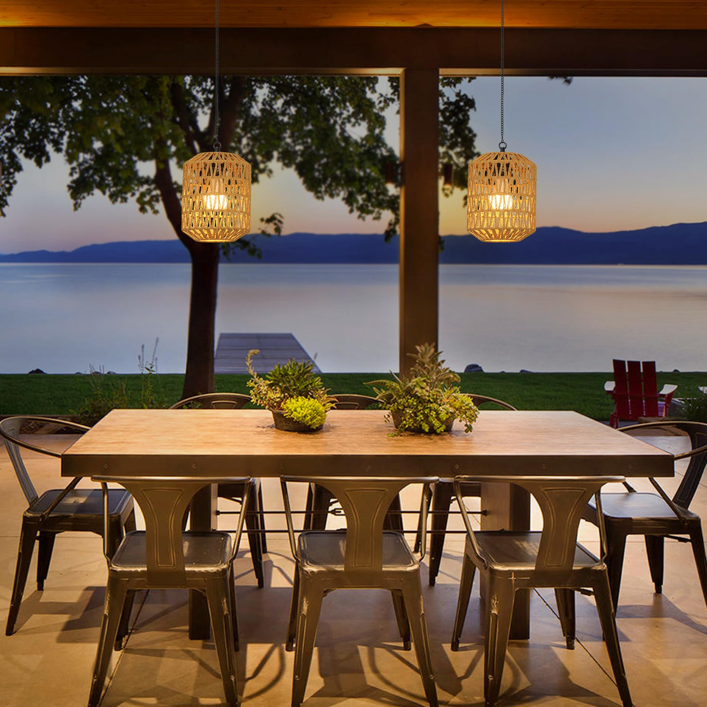 Crafted from well-made rattan, this outdoor pendant light combines durability with a stylish farmhouse aesthetic. Its unique design not only enhances your decor but also provides practical benefits with its rechargeable battery and remote control functionality. The light comes with two rechargeable bulbs, ensuring you have everything you need for easy installation without the hassle of electrical wiring or the need for an electrician.