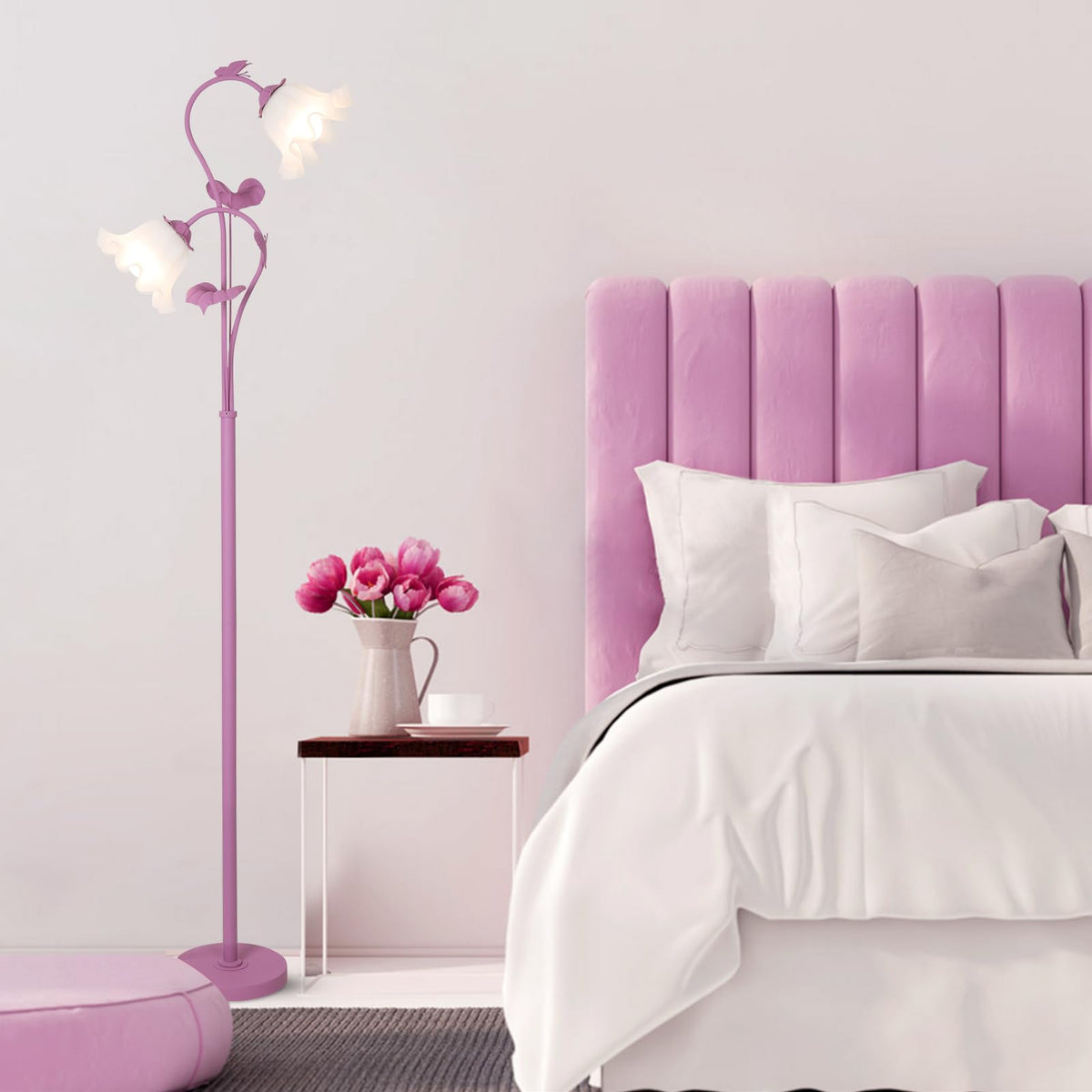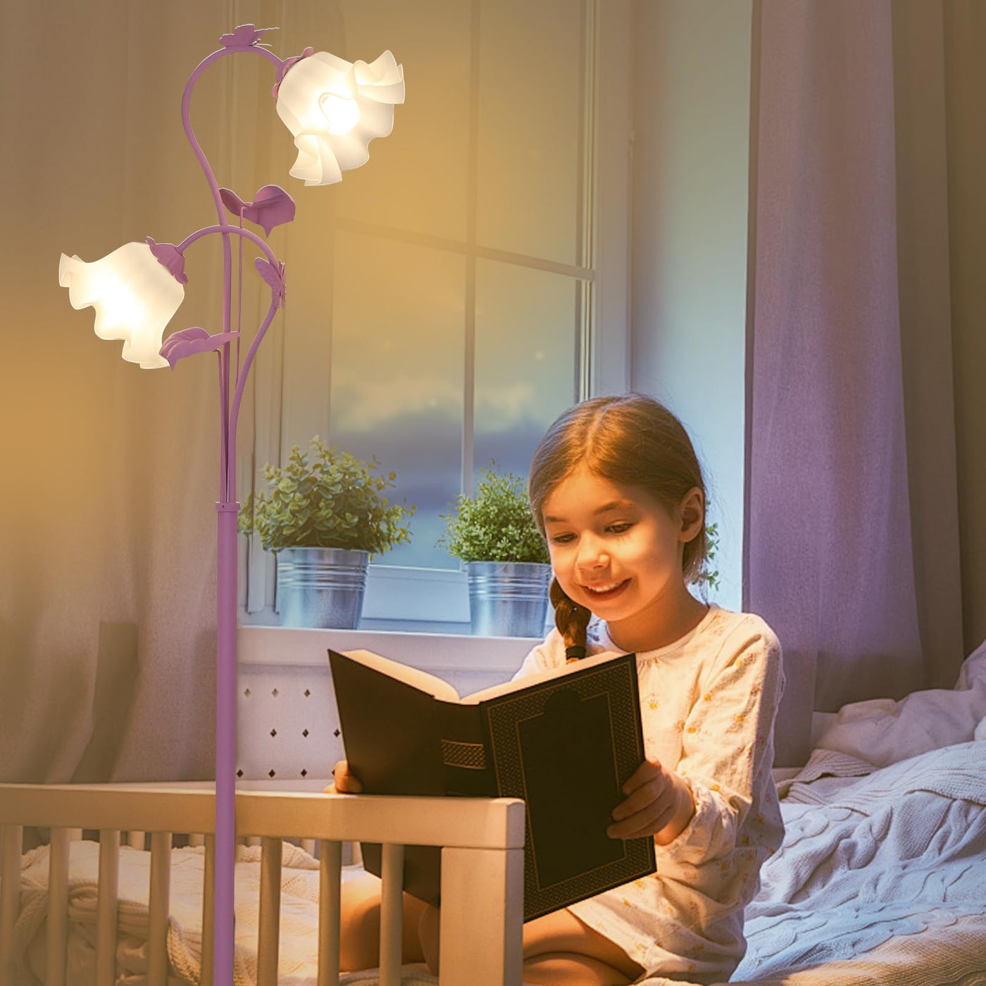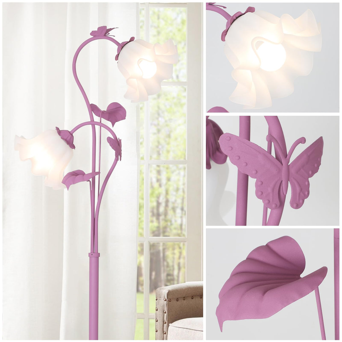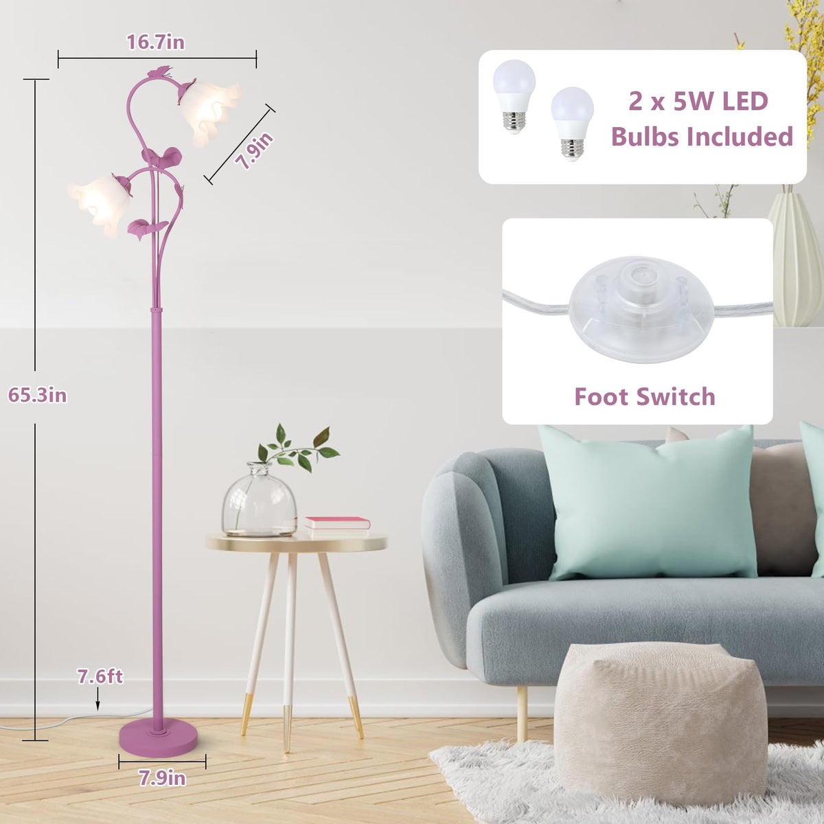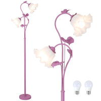 Hmvpl Purple Floral Floor Lamp, Girls Flower Floor Lamp For Bedroom, Cute Lotus Standing Lamp With 2 Led 5W Blubs, Foot Switch,