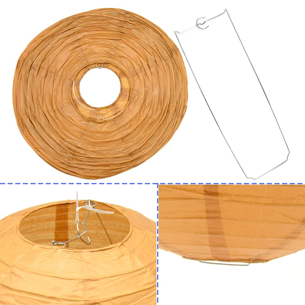 Crafted from strong quality paper and featuring a durable metal bracket, these paper lanterns are designed for easy assembly and repeated use. With a diameter of 12 inches (30 cm) and a khaki color, they add a charming touch to any setting. Ideal for childrens DIY activities, bachelorette parties, graduation celebrations, and more, these lanterns can transform your space into a beautifully decorated venue for any occasion. Whether its a wedding, birthday party, or holiday celebration, these lanterns complement other decorations seamlessly.