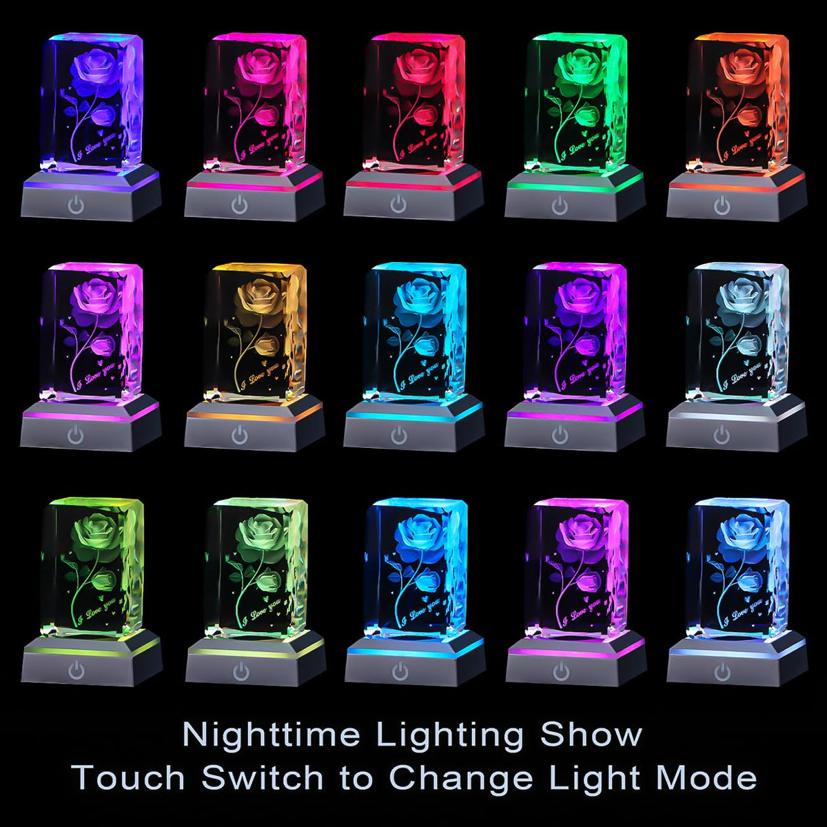 Hochance 3D Butterflyrose Crystal Multicolor Nightlight - I Love You Decolamp,Perfect Valentines Gift Ideas For Her My Girlfrien