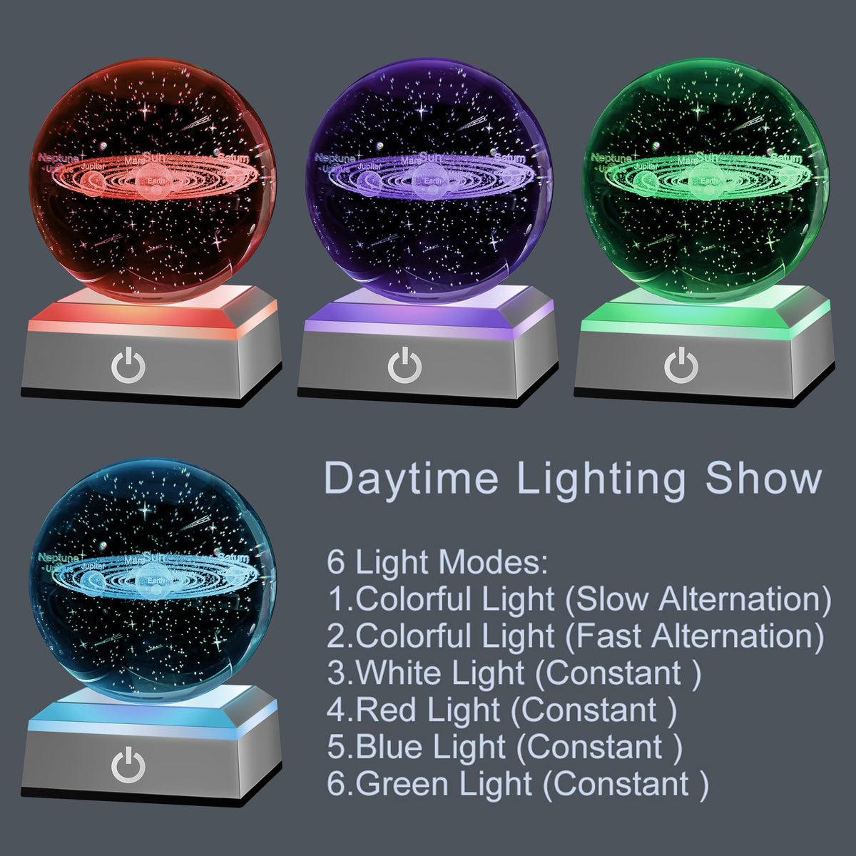 Hochance 3D Solar System Crystal Ball Nightlight Multicolor Decolamp For Science Astronomy Space,Thanksgiving Christmas Gifts Id