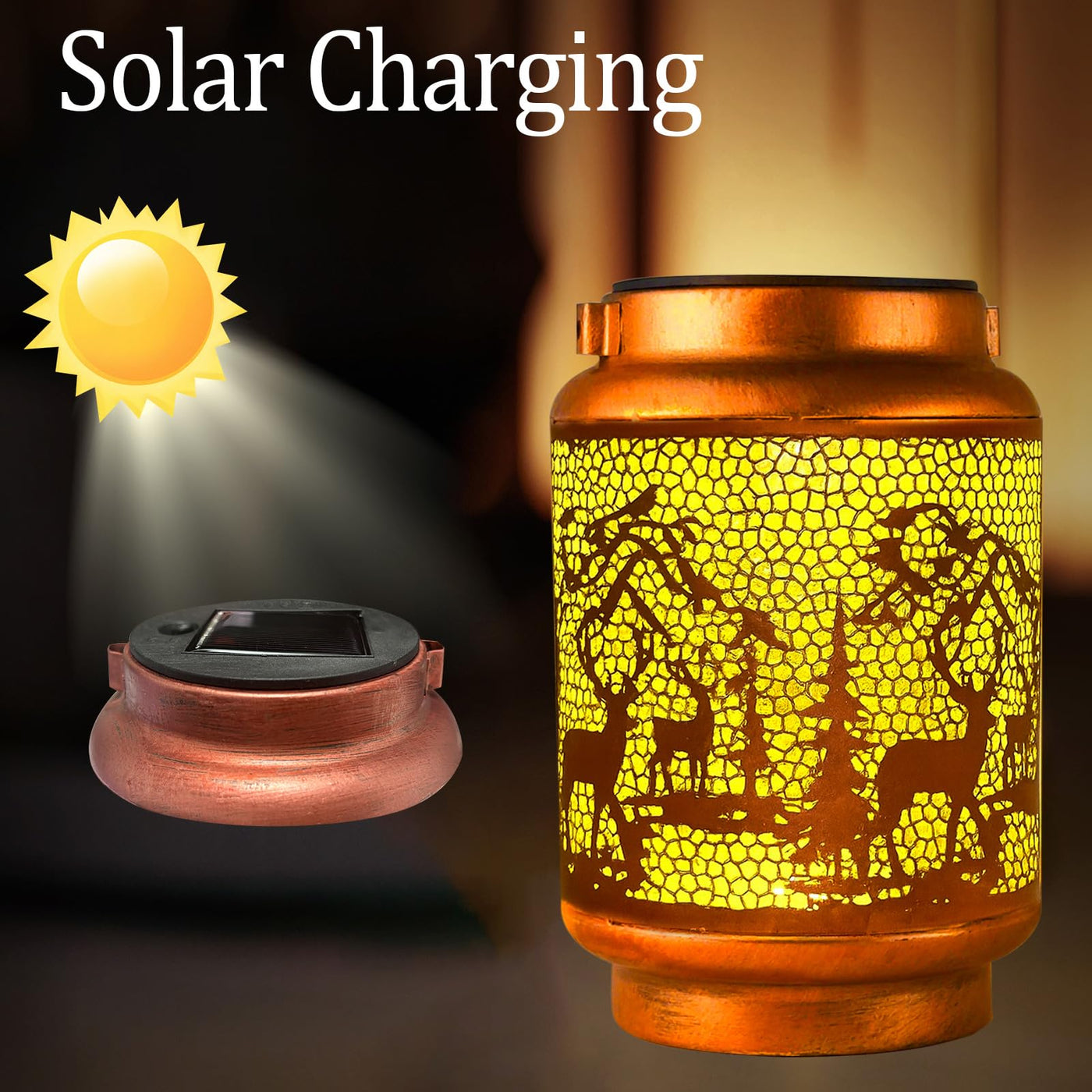 HOFLYW Solar Lantern - Outdoor Waterproof Metal Garden Decor, Bronze, Model CL-XHTYD-1-1-1