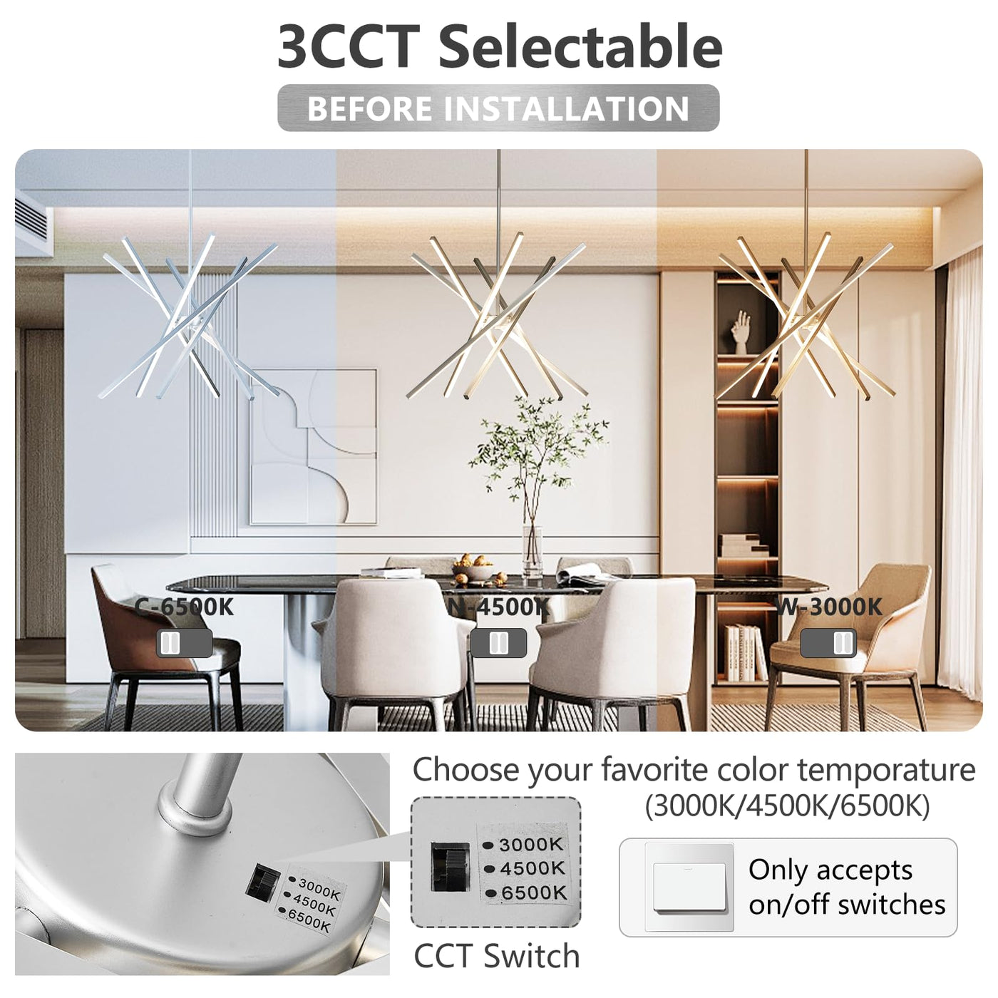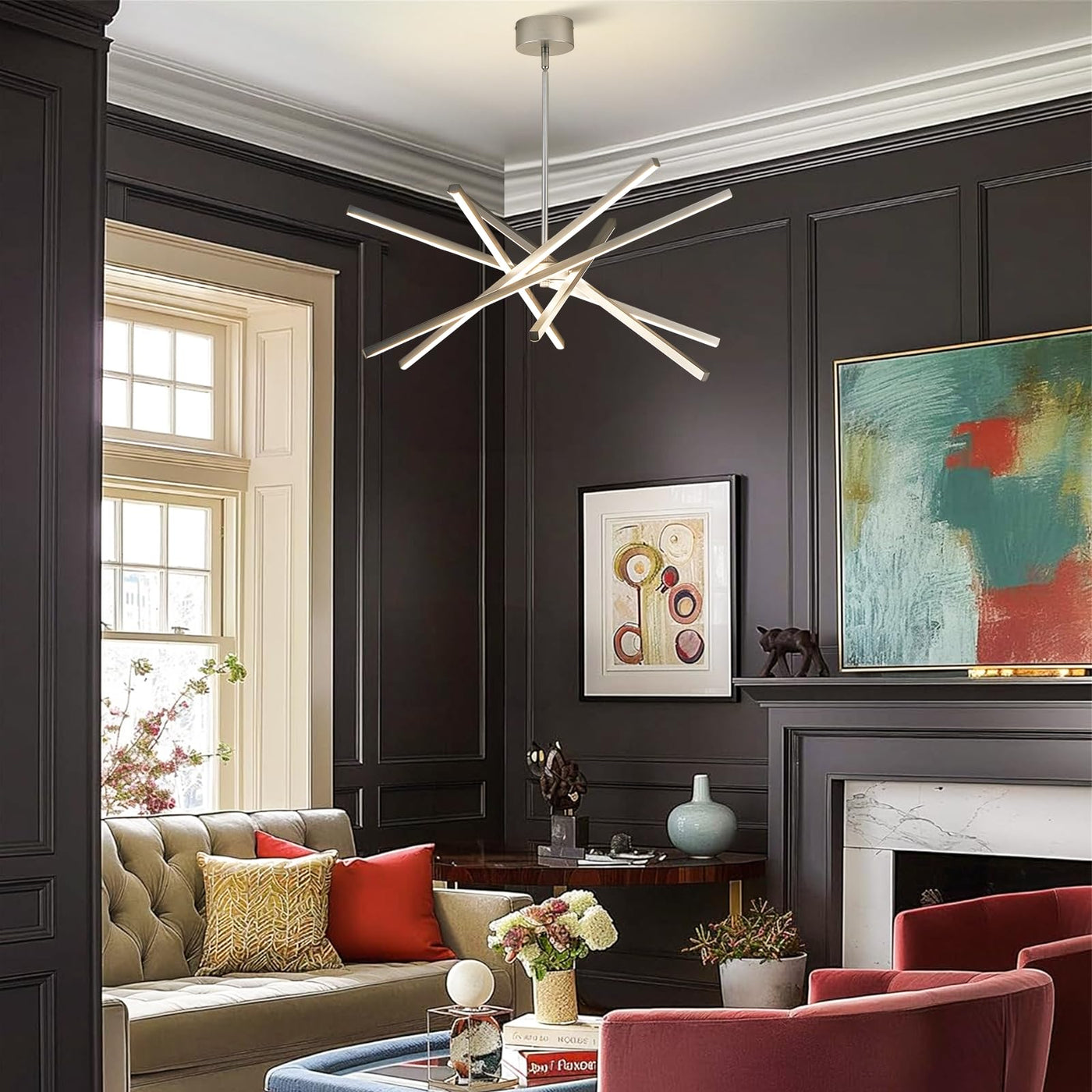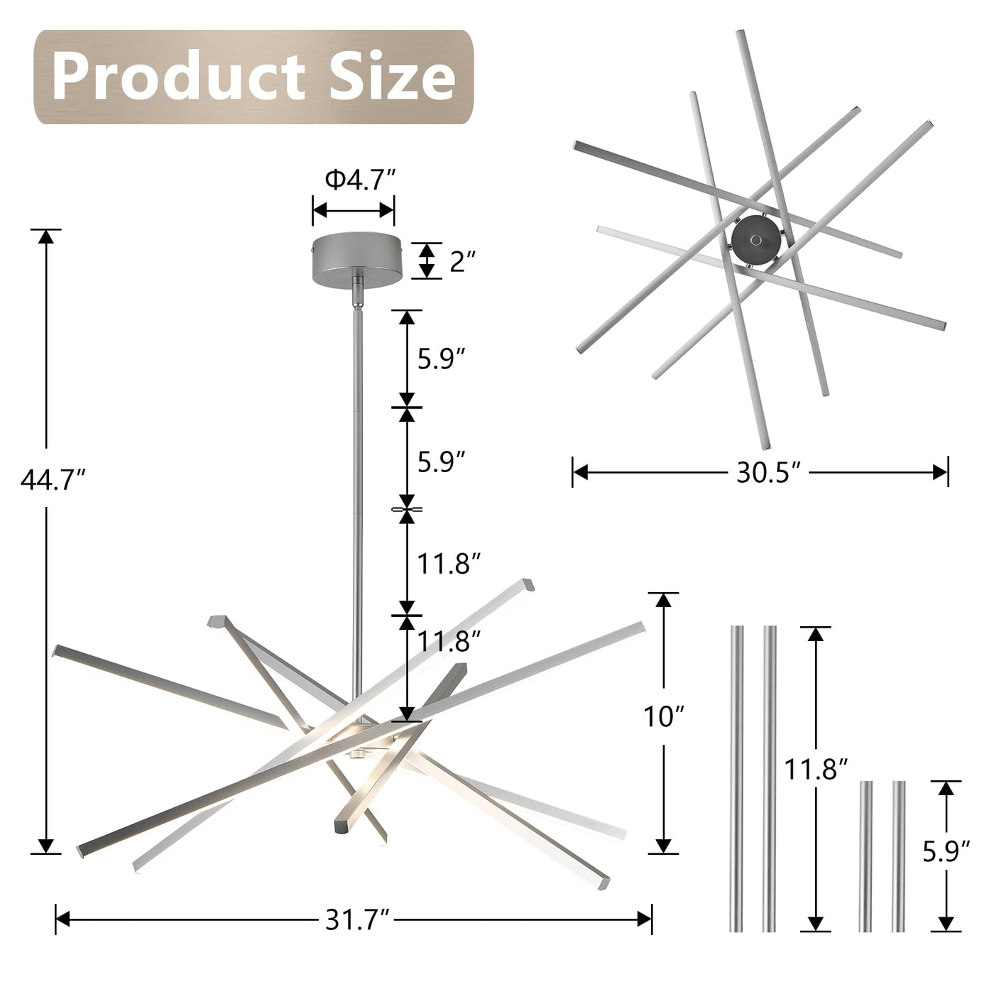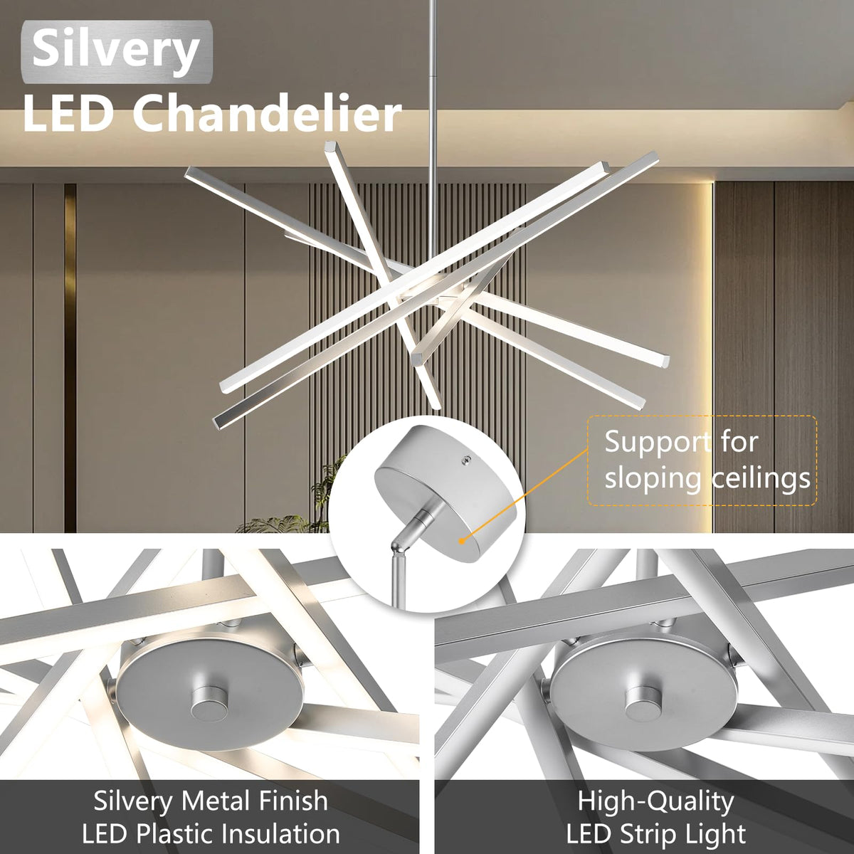 Hogbu Modern Chandelier Light Fixtures - Led 6-Lights Silver Dining Room Linear Chandeliers Sputnik Pendant Lights Fixture Over