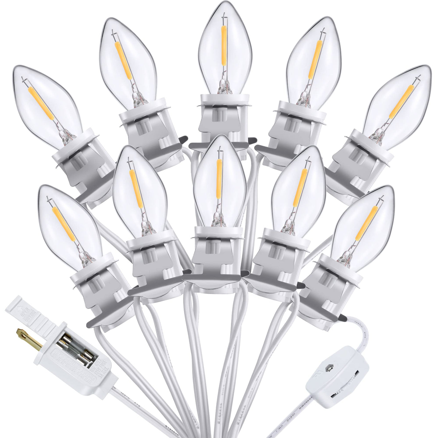 Hohean Meonum Accessory Cord with 10 LED Bulb, C7 Christmas Village Light Cord with Two Spare Fuse, Blow Mold String Lights with