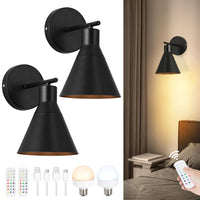 HOJOYRI Modern Wireless Battery Operated Wall Sconces, Black Rechargeable Cordless LED Wall Lights Set of Two, Dimmable Battery Powered Wall Decor Lamp Fixture with Remote Control for Bedroom Indoor Wall sconce X2 Light Bulb X2 Remote X2 Instruction X2