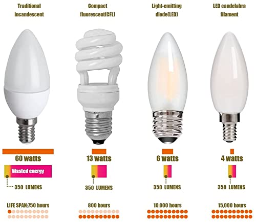 Elegant B10 candle shape with a frosted glass finish for aesthetic appeal.