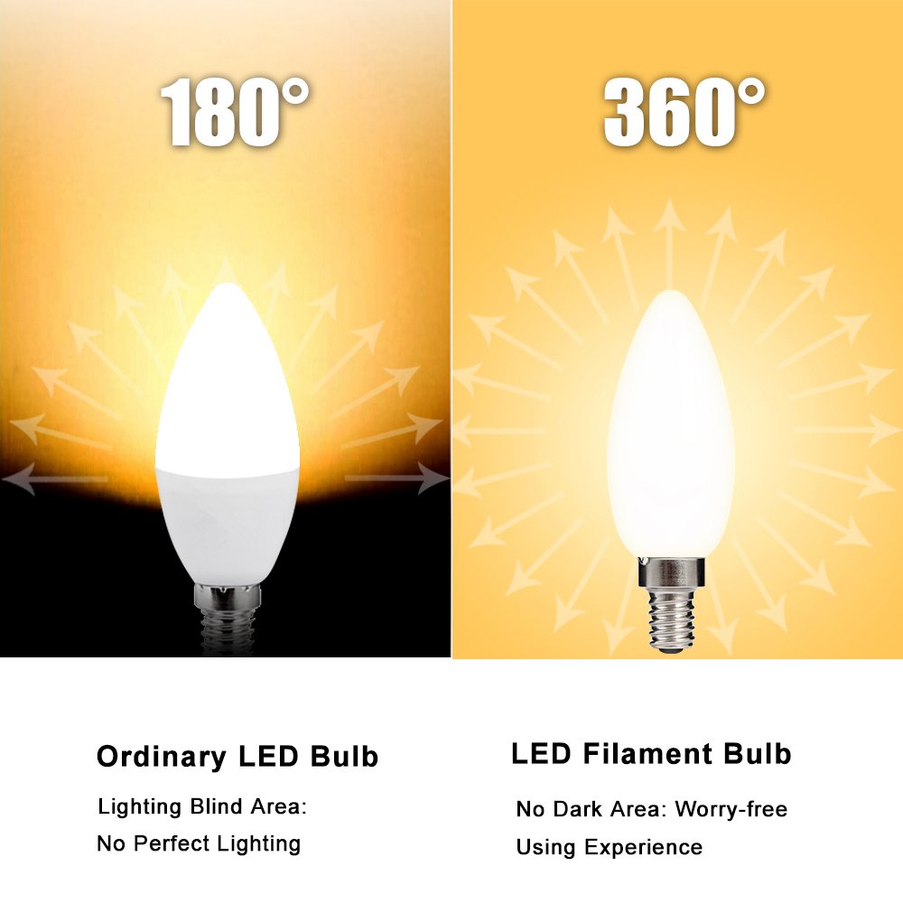 HOLA LED Candelabra Bulb, 4W 400 Lumens, Dimmable E12 Base, Warm White 2700K, Frosted Glass, 6 Pack