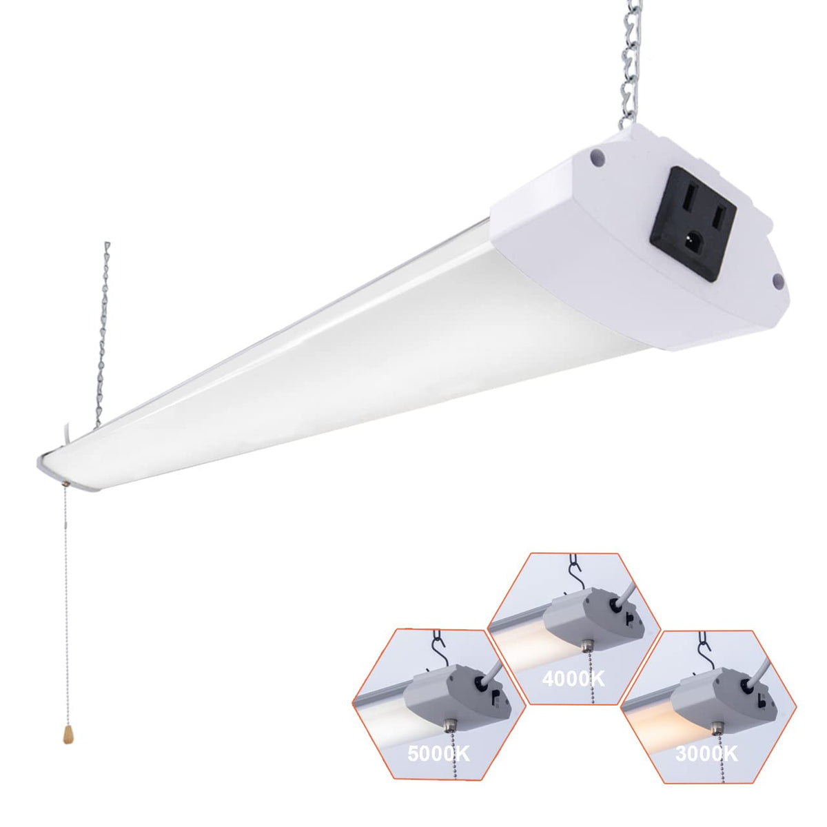 Q: What are the benefits of the HOLDWILL 4FT LED Shop Light?A: The HOLDWILL 4FT LED Shop Light offers multiple benefits, including three color temperature options (3000K, 4000K, and 5000K) to suit various lighting needs. Its durable aluminum housing ensures long-lasting performance, while the easy plug-and-play installation allows for quick setup in any workspace. Additionally, it features a pull chain for convenient on/off operation.