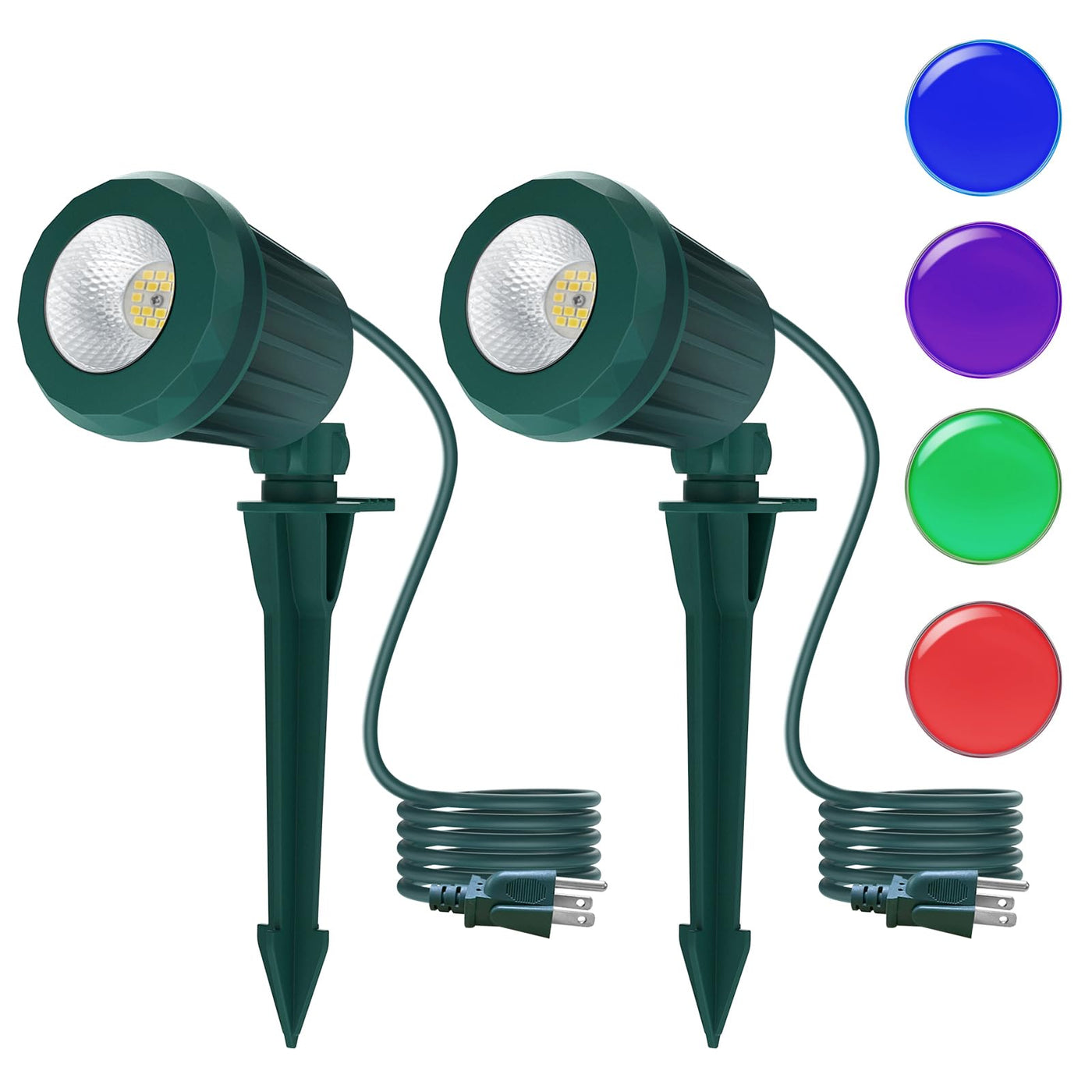 Holeva Halloween & Christmas Outdoor Spotlight 6500K Cool White Led Landscape Lighting With Rgbp 4 Multicolor Lenses Ip67 Waterproof 120V Plug-In For Yard Garden Tree Holiday Decor(2 Pack Green)