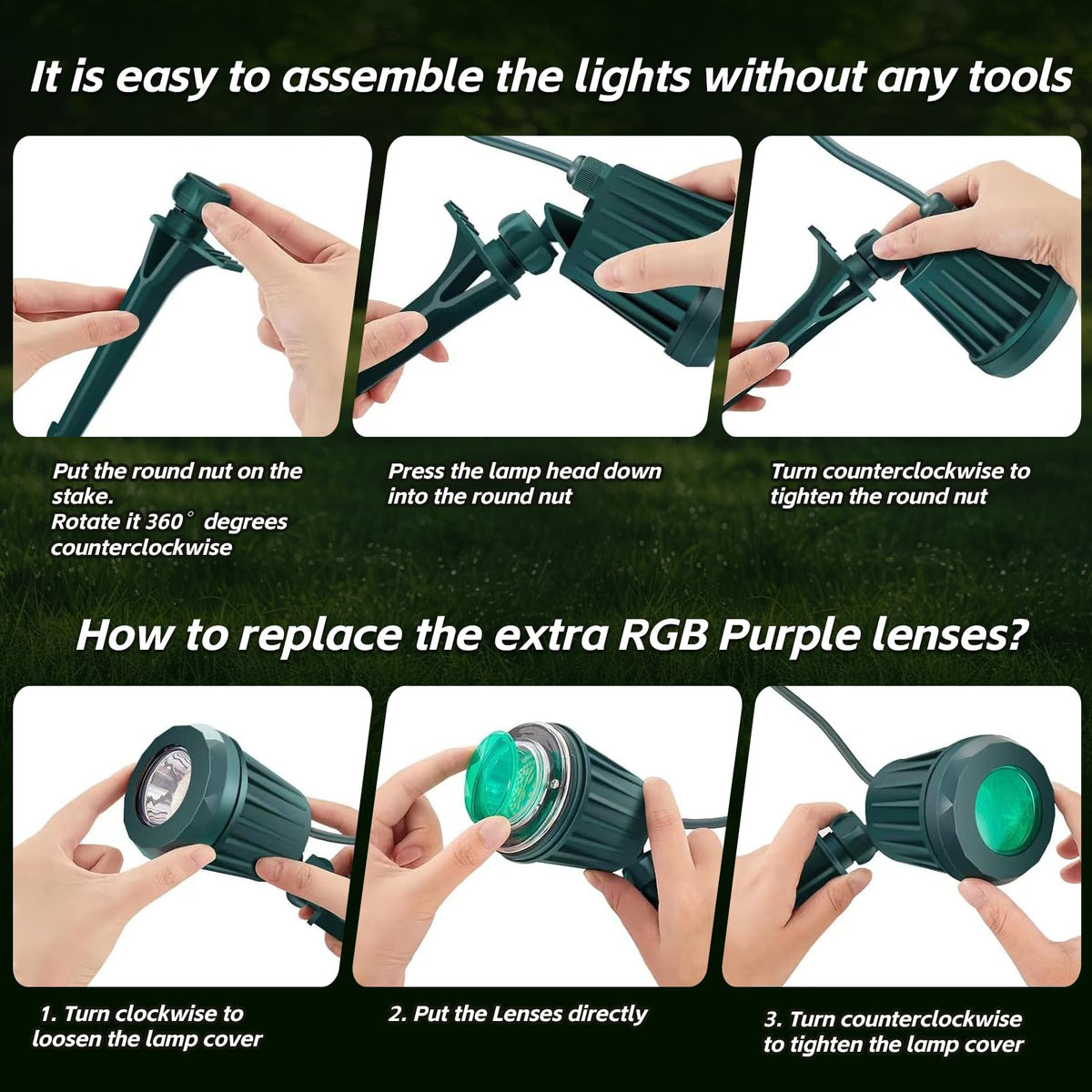 Holeva Halloween & Christmas Outdoor Spotlight 6500K Cool White Led Landscape Lighting With 4 Lenses (Rgb Purple) Ip67 Waterproof 120V Plug-In For Yard Garden Tree Holiday Decor(2 Pack Green)